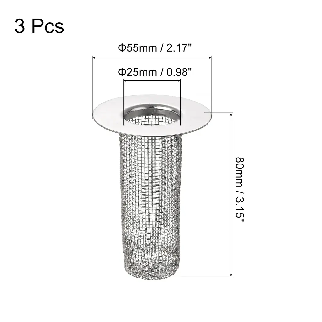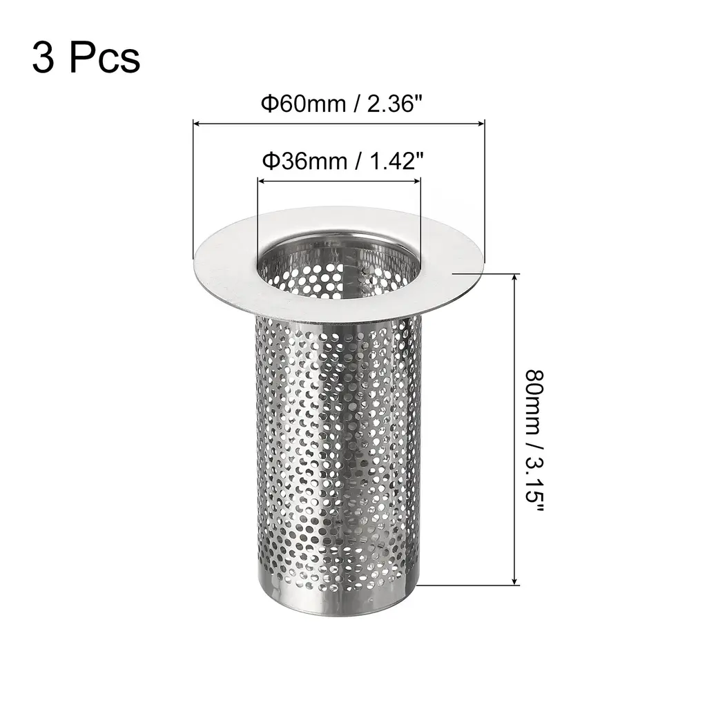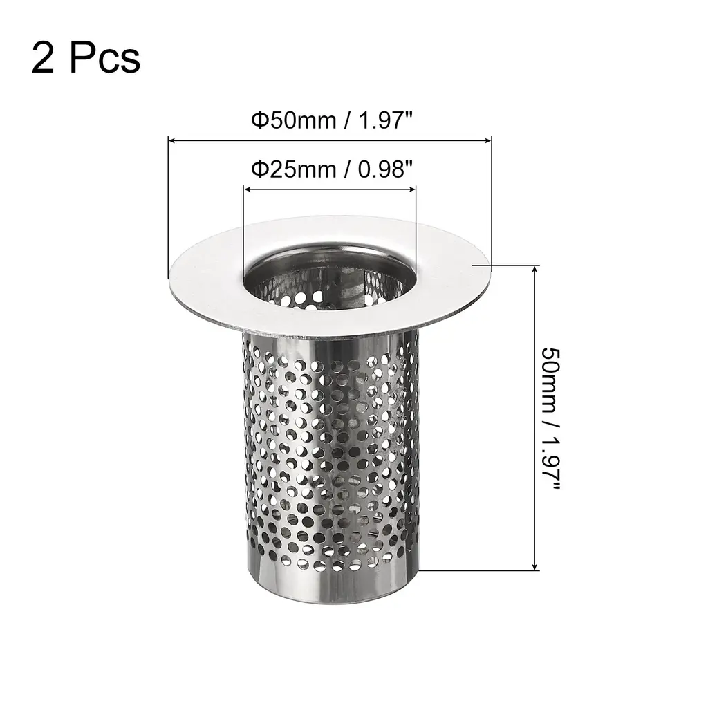 Description:Material: Our drain hair catcher is made of stainless steel, rust-free, and Overall thickening, which is more sturdy, durable, and not deformed.Mesh: Without stopping the flow of water, keeping your sink drain, or bathtub drain from creating blockage.Easy to Clean: The bathroom sink drain strainer is easy to use, install it directly. No need to assemble or disassemble anything. It effectively catches hair and any debris, ensuring smooth and fast drainage and preventing clogging.Use: Great for bathroom, kitchen, slop, tub, and lavatory sink. floor drains, water pipes, and more.Specification:Outer Diameter: 50mm/1.97"Inner Diameter: 25mm/0.98"Depth: 50mm/1.97"