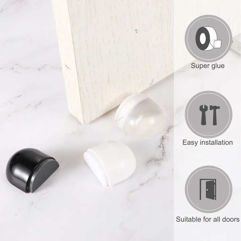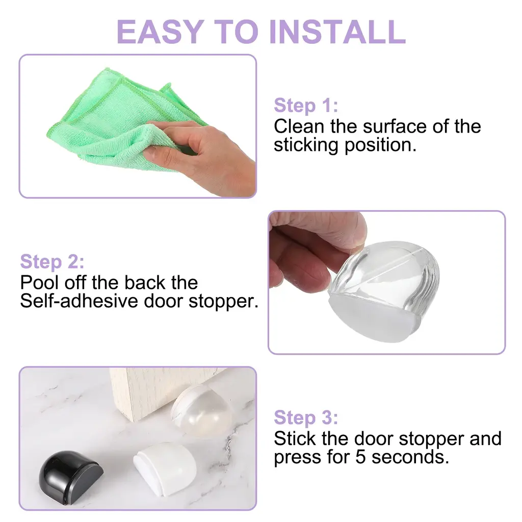 Material - These door stopper wall protectors are made of rubber material, which is soft and does not easily fade, crack, or deform after long-term use.Design - The floor door stopper is self-adhesive design, no drilling is required, and no special tools are needed to firmly stick the door stopper to the smooth ground. It is not easy to move after long-time use, and no residue will be left when turning.Feature - The door buffer has good cushioning and shock absorption performance, which can avoid noise while effectively preventing scratches and dents on the floor or wall. In addition, it is easy to clean and can be used repeatedly.Widely applicable - This rubber door stopper can match different floors, such as laminate, parquet, tile, stone, linoleum, etc. It is also suitable for walls, refrigerators, cabinets, etc. to avoid collisions, bringing convenience to your life.Specification:Color: ClearMaterial: RubberSize: 4.1 x 3.9 x 2 cm / 1.61 x 1.54 x 0.79 Inch (L x W x H)Package: 2Pcs x Door Stoppers