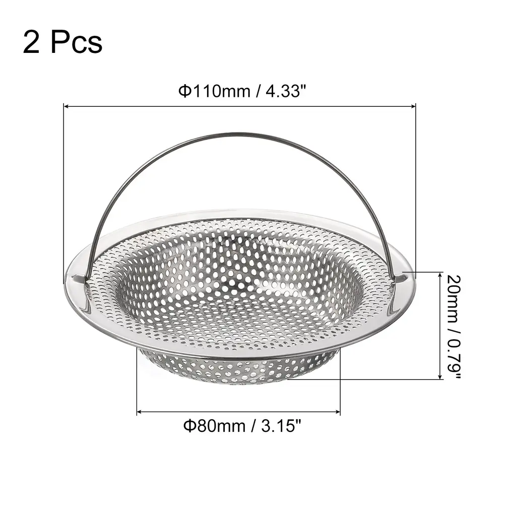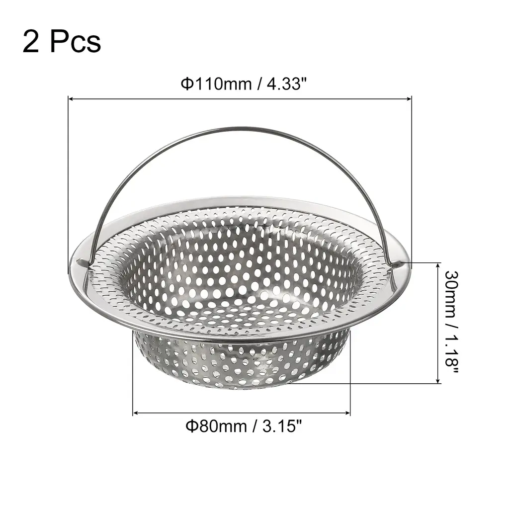 2Pcs Kitchen Sink Strainer, 4.33" Od X 3.15" Id - Silver - 4.33" X 3.15" X 0.79"