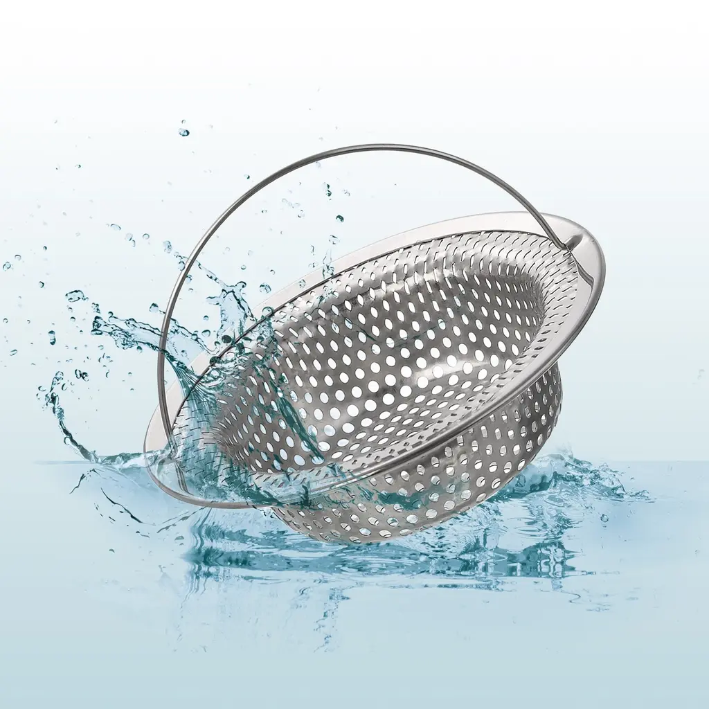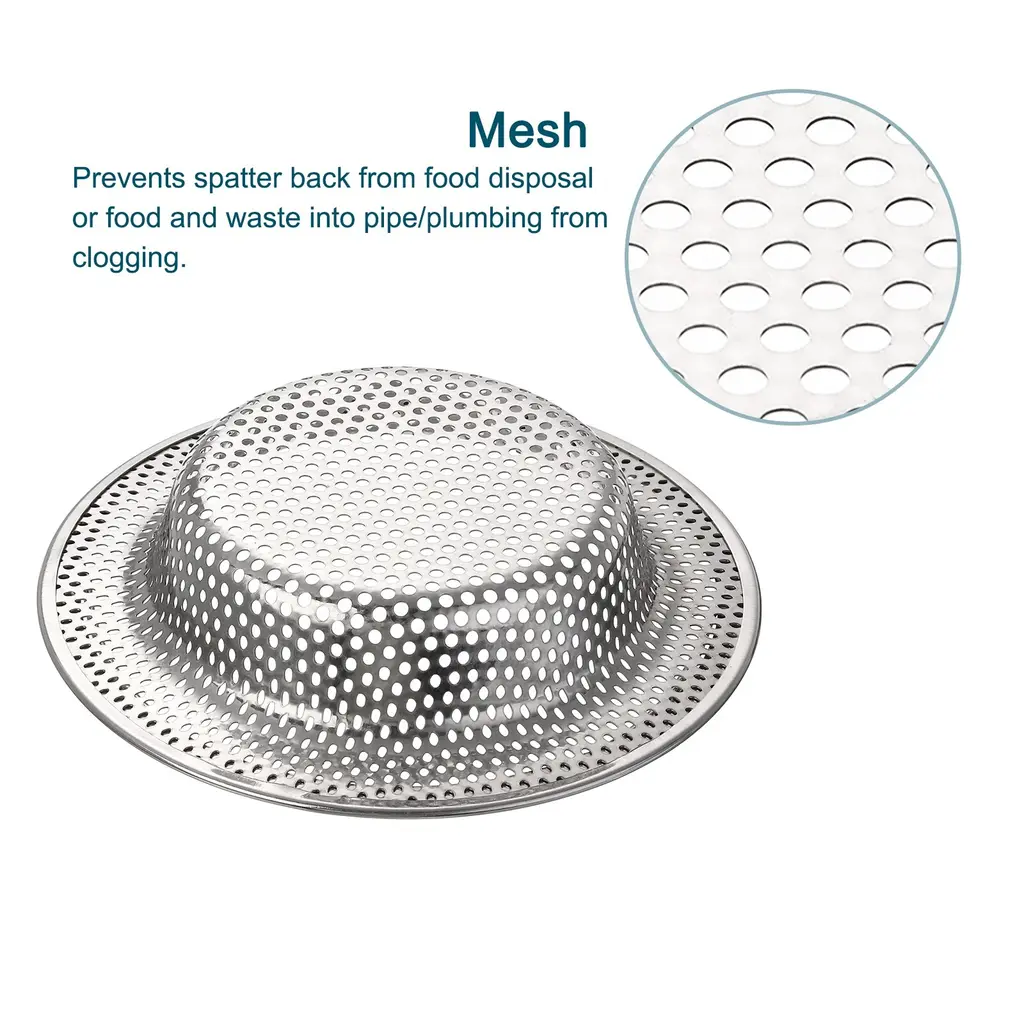 Description:Material: Our kitchen sink strainer is made of stainless steel construction, corrosion-resistant, rust-proof, more durable, and non-deformation.Mesh: Prevents spatter back from food disposal or food and waste into pipe/plumbing from clogging; Also can be used as a drain stopper to hold water in the sink for washing or keep kitchenware from going down the drain.Easy to Clean: Easy and installation and use, remove from sink for easy cleaning with warm water and soap to keep the shine for years.Use: Our sink strainer is not only for the kitchen sink, you may also use it in bathtubs and other drainsSpecification:Outer Diameter: 110mm/4.33"Inner Diameter: 80mm/3.15"Depth: 20mm/0.79"