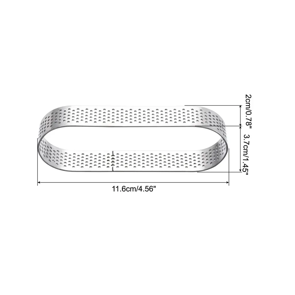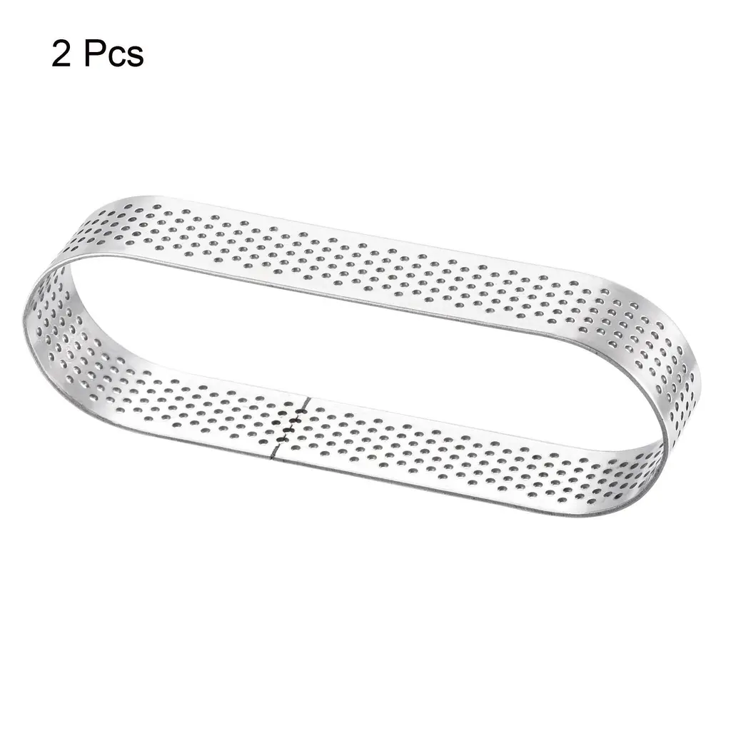 Why Choose Small Cake Rings?These cake rings are made of stainless steel, high temperature, corrosion-resistant and rust resistant, not easy to deform, lasting for long term use.The oval cake ring has a venting hole design and the venting holes are evenly distributed and ventilated without leaking.Non-stick coating can reduce the use of edible oil and cooking time, reduce energy consumption, and is easier to release.Suitable for making mousse cake, bread, biscuit, cookies, chocolate, etc;microwave, freezer, dishwasher safe.Great for families, hotels, baking rooms, restaurants, cafés, bakeries and so on.It can be placed in ovens, microwaves, dishwashers, refrigerators, etc.Specification:Material: Stainless steelColour: SilverShape: OvalSize: 11.6 cm x 3.7 cm x 2 cm/4.56" x 1.45" x 0.78" (L*W*H)Package Included: 2pcs x Cake Ring