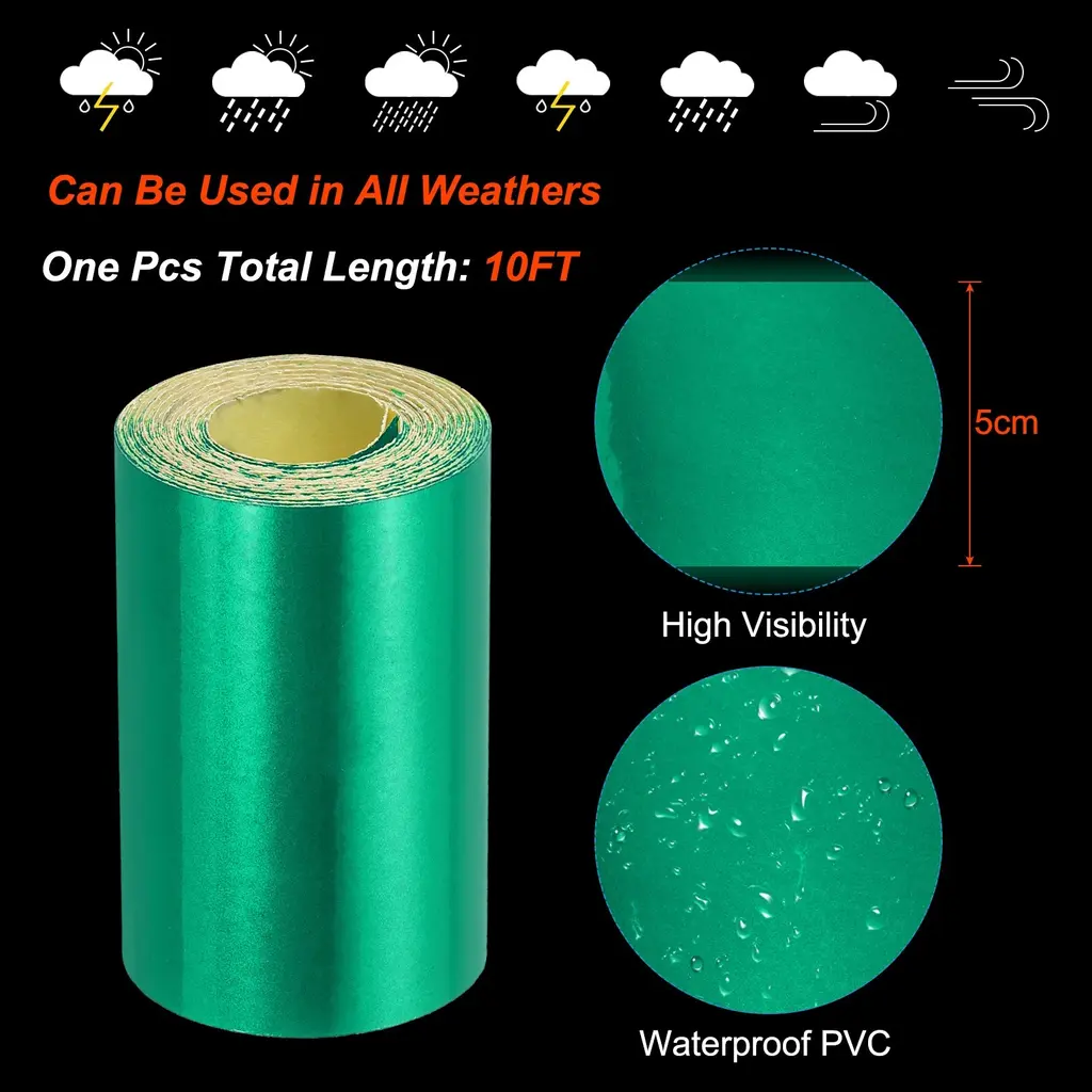 Reflector tape is widely used on driving roads, outdoors, construction site warning strips, factory equipment, different types of trailers, bicycles, backpacks, bridges, motor vehicle driving signs, parking lot down poles, truck parking spots, etc. Reflective tape can also be used to make traffic signs, advertising signs, temporary construction signs, etc.SpecificationColor: RedMaterial: PVCSize: 3 Meter x 5 cm / 10 Feet x 2 Inch (L*W)Packing List: 2 Roll x Reflector TapeAdvantageMade of PVC material, lightweight and portable, high visibility, tough, durable, waterproof, resistant to dirt, grease, rain, and sun-fading, and easy to apply.Industrial strength adhesive withstands extreme temperatures and will not damage the elements. The tape reflects light to enhance your visibility and ensure your safety in the dark, which will significantly increase visibility day and night.Instruction Warning tape is simple to operate and easy to use. First, you need to take out the reflective strip and confirm that the product is not damaged or abnormal(please make sure the tapes are dry and clean). Then peel off the protective film of the reflective strip, and then stick it according to the surface you want to stick it on.NOTE: 1. Please clean the dust and occlusion on the surface of the object before use. 2. The product itself does not emit light, it only reflects the light source. The stronger the light, the better the reflective effect.