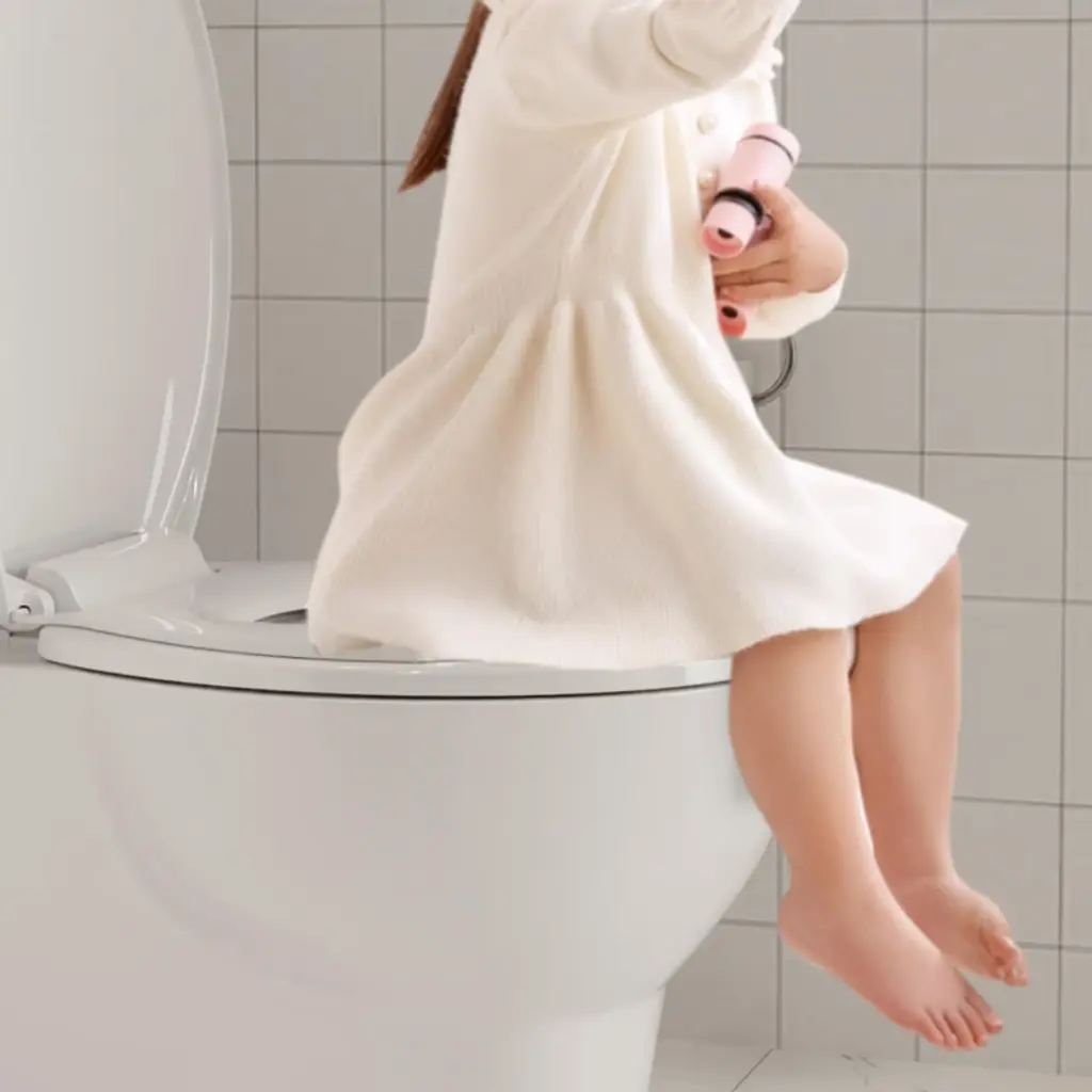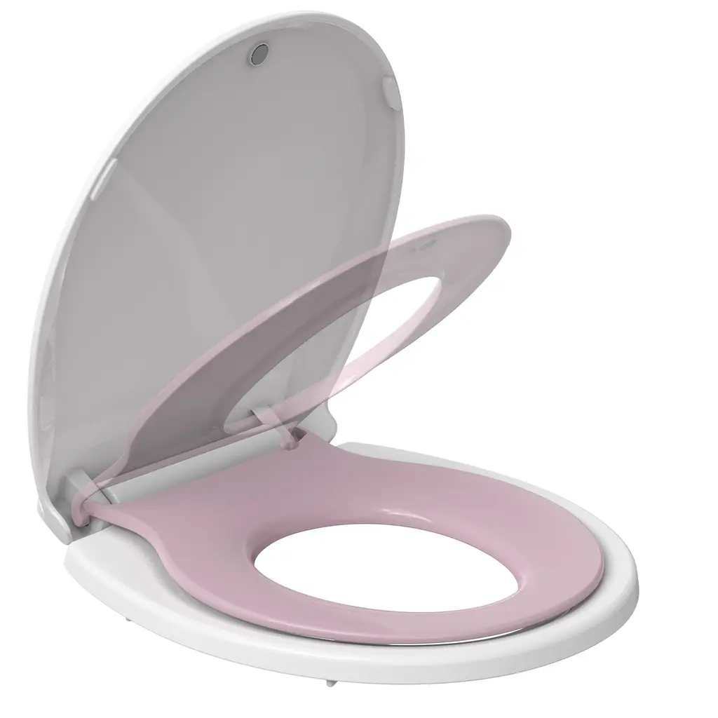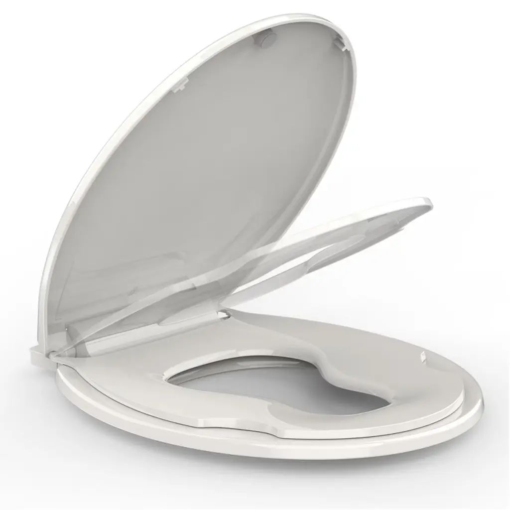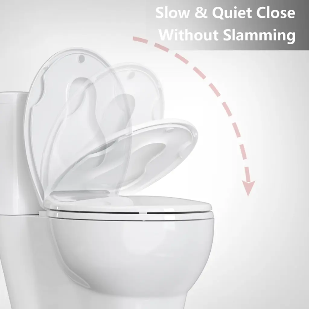 Round Toilet Seat with Built-in Toddler Seat for Easy Potty Training Slow Close Feature,Easy Install and Clean, Perfect for Both Adults and Children