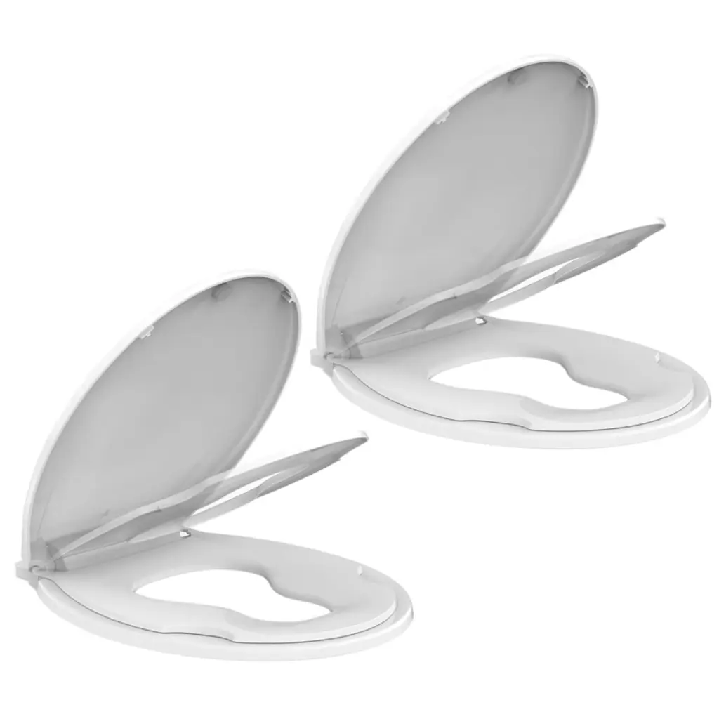 2Pcs Round Toilet Seat With Built-in Toddler Seat For Easy Potty Training Slow Close Feature,easy Install And Clean, Perfect For Adults And Children