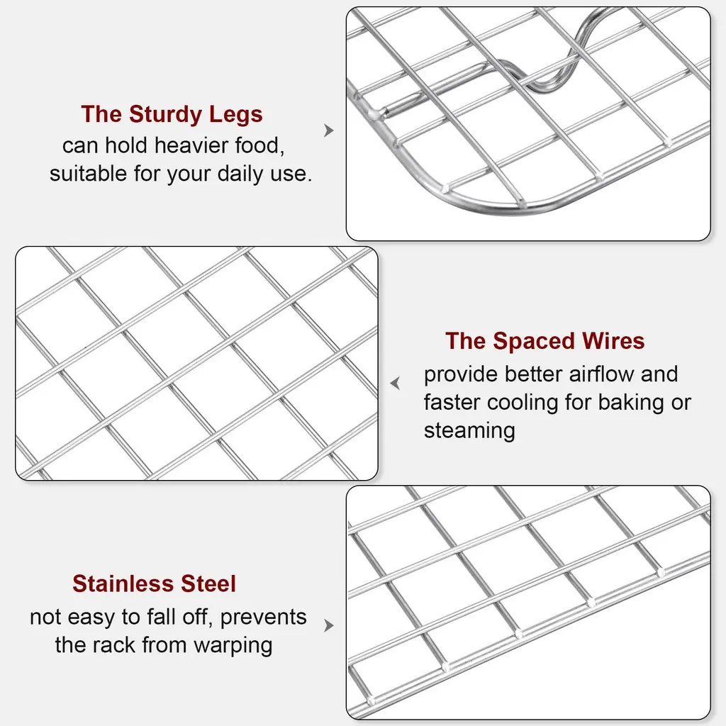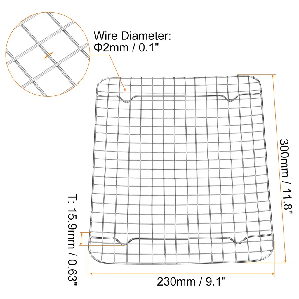 1. Barbecue mesh mat is made of stainless steel for strength and durability, it is effective against rust and corrosion to ensure a long lasting life.2. This square BBQ grill net is designed with 4 supporting feet which can keep the food stable on the grill, meanwhile the mesh wires provided the perfect air circulate. 3. This baking wire rack can be cleaned very easily by water, and also you can put it into the dishwasher to help to cut the time and effort.4. Our cooling racks are suitable for various workplace such as bakery, kitchen, restaurant, and outdoor BBQ, an efficient for large amount of daily needs hold which can be widely used to roasting, cooking, baking and draining food in the oven.5. NOTE: Please confirm the right size and shape before the purchase.