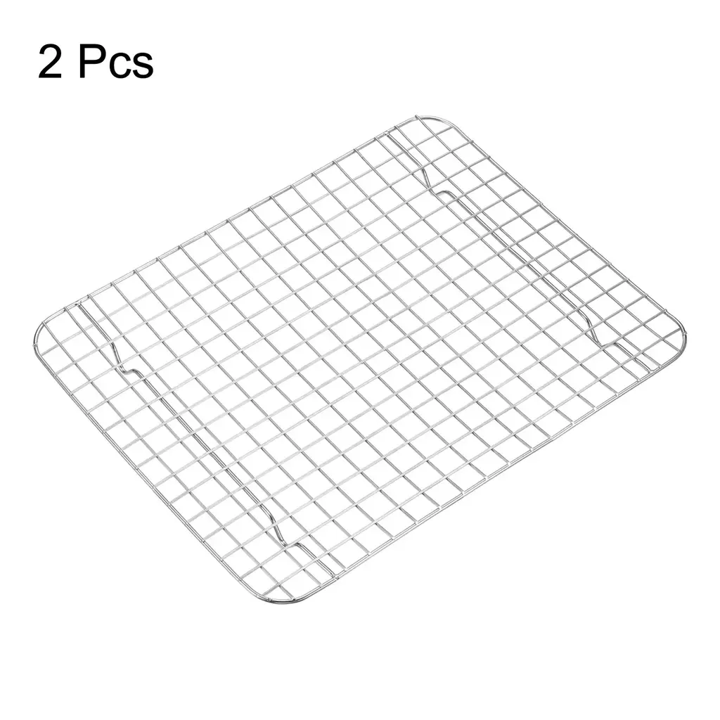 2Pcs Square Cooling Rack 11.8" X 9.1" 201 Stainless Steel With 15.9mm 4-Legs - 11.8" X 9.1" - Silver