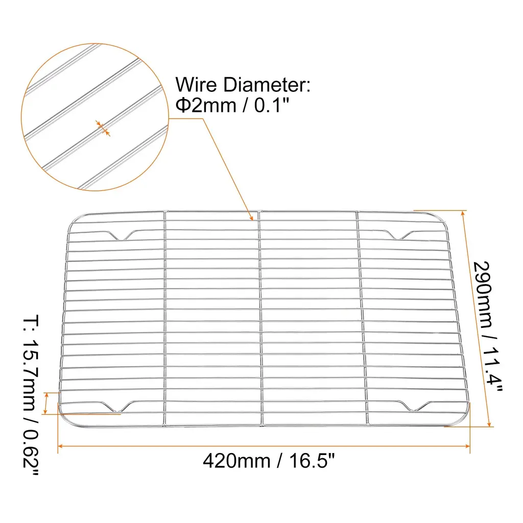2Pcs Square Cooling Rack 16.5" X 11.4" 201 Stainless Steel With 15.8mm 4-Legs - 16.5" X 11.4" - Silver