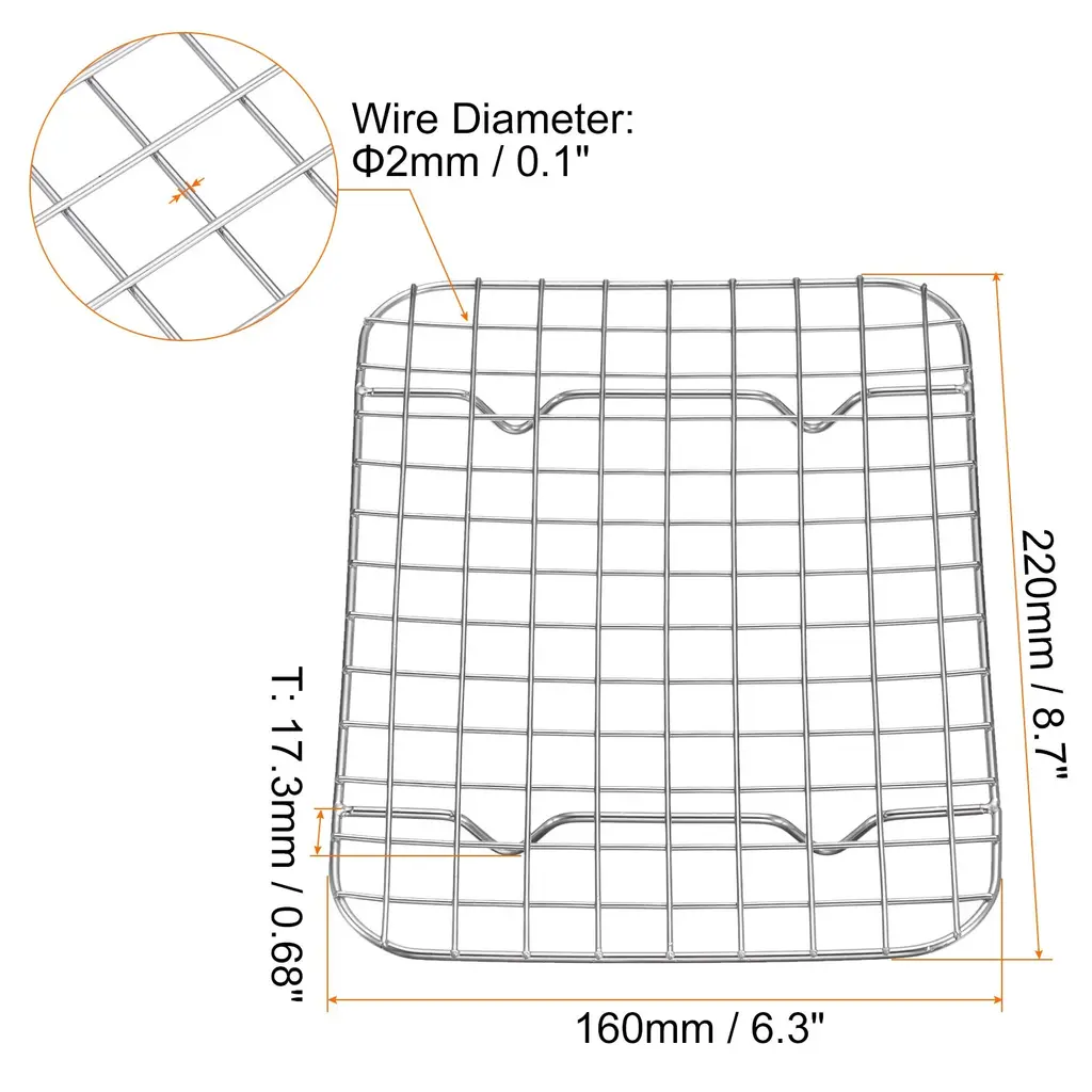 2Pcs Square Cooling Rack 8.7" X 6.3" 201 Stainless Steel With 17mm 4-Legs - 8.7" X 6.3" - Silver