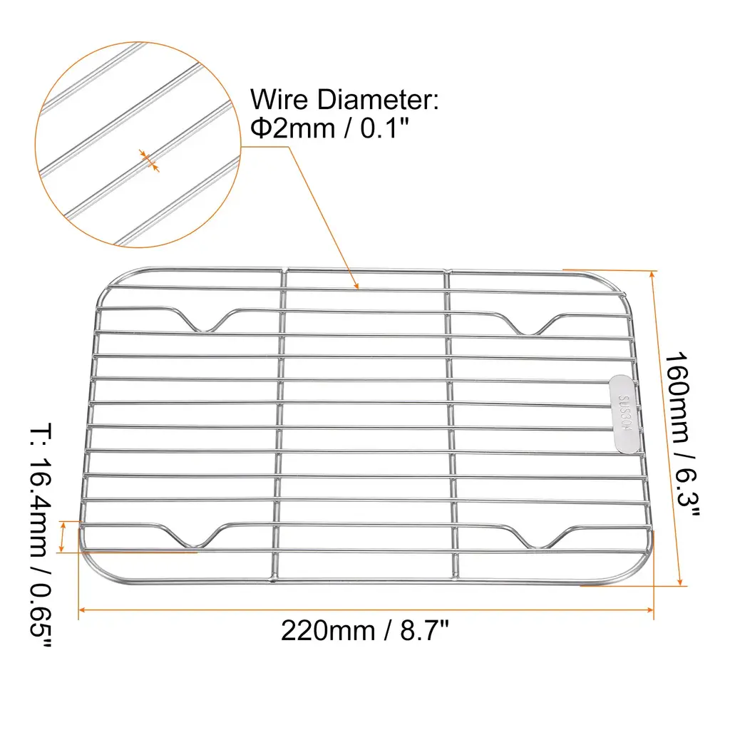 1. Barbecue mesh mat is made of stainless steel for strength and durability, it is effective against rust and corrosion to ensure a long lasting life.2. This square BBQ grill net is designed with 4 supporting feet which can keep the food stable on the grill, meanwhile the mesh wires provided the perfect air circulate. 3. This baking wire rack can be cleaned very easily by water, and also you can put it into the dishwasher to help to cut the time and effort.4. Our cooling racks are suitable for various workplace such as bakery, kitchen, restaurant, and outdoor BBQ, an efficient for large amount of daily needs hold which can be widely used to roasting, cooking, baking and draining food in the oven.5. NOTE: Please confirm the right size and shape before the purchase.
