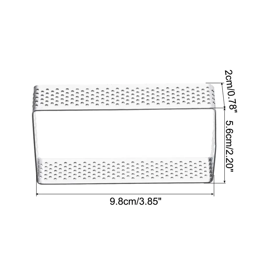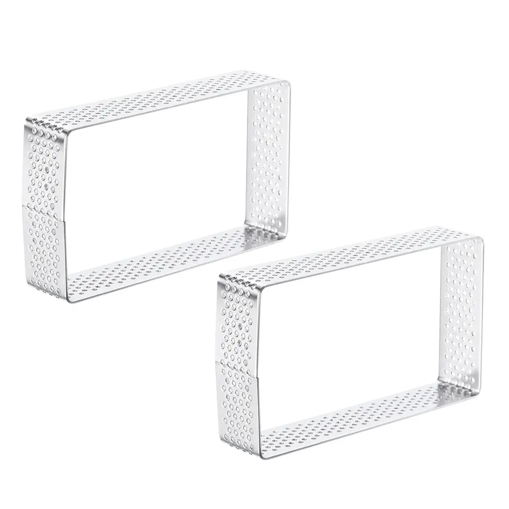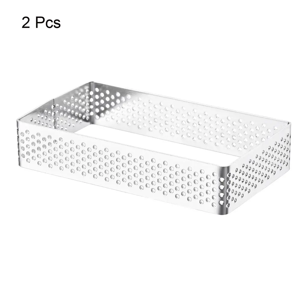 Why Choose Small Cake Rings?These cake rings are made of stainless steel, high temperature, corrosion-resistant and rust resistant, not easy to deform, lasting for long term use.The square cake ring has a venting hole design and the venting holes are evenly distributed and ventilated without leaking.Non-stick coating can reduce the use of edible oil and cooking time, reduce energy consumption, and is easier to release.Suitable for making mousse cake, bread, biscuit, cookies, chocolate, etc;microwave, freezer, dishwasher safe.Great for families, hotels, baking rooms, restaurants, cafés, bakeries and so on.It can be placed in ovens, microwaves, dishwashers, refrigerators, etc.Specification:Material: Stainless steelColour: SilverShape: RectangularSize: 9.8 cm x 5.6 cm x 2 cm /3.85" x 2.20" x 0.78" (L*W*H)Package Included: 2pcs x Cake Ring