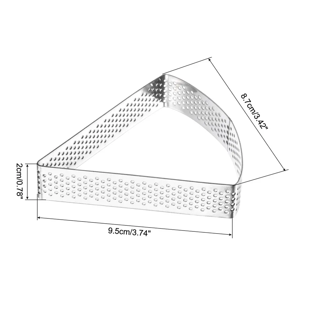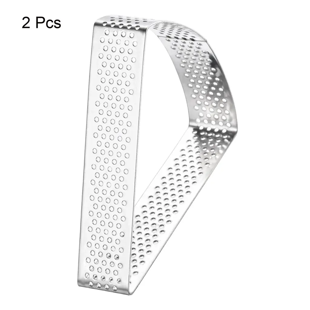 Why Choose Small Cake Rings?These cake rings are made of stainless steel, high temperature, corrosion-resistant and rust resistant, not easy to deform, lasting for long term use.The fan shaped cake ring has a venting hole design and the venting holes are evenly distributed and ventilated without leaking.Non-stick coating can reduce the use of edible oil and cooking time, reduce energy consumption, and is easier to release.Suitable for making mousse cake, bread, biscuit, cookies, chocolate, etc;microwave, freezer, dishwasher safe.Great for families, hotels, baking rooms, restaurants, cafés, bakeries and so on.It can be placed in ovens, microwaves, dishwashers, refrigerators, etc.Specification:Material: Stainless steelColour: SilverShape: Fan ShapedSize: 9.5 cm x 8.7 cm x 2 cm/3.74" x 3.42" x 0.78" (L*W*H)Package Included: 2pcs x Cake Ring