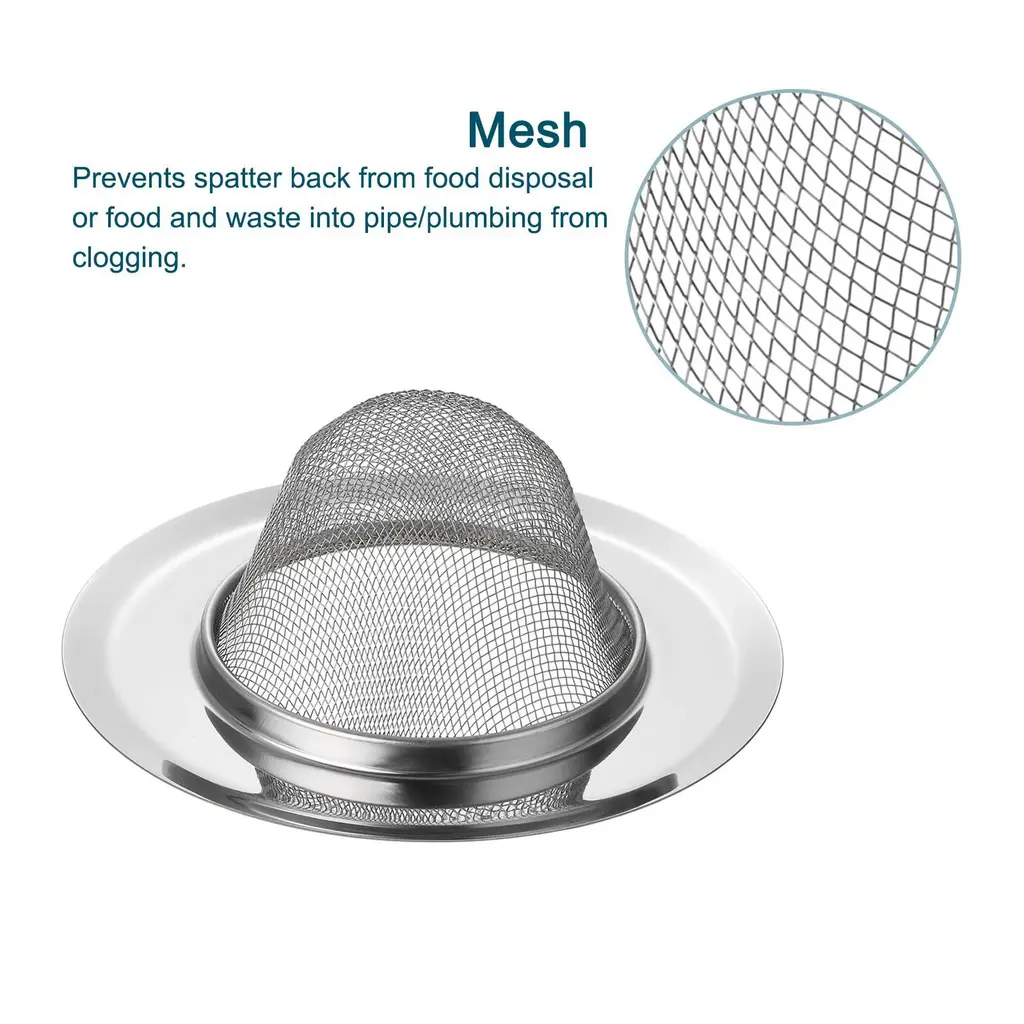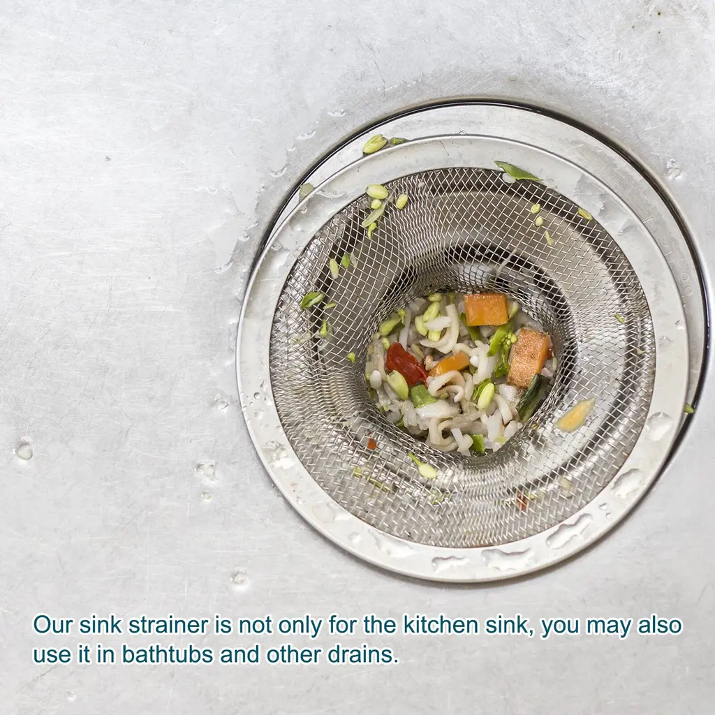 Description:Material: Our kitchen sink strainer is made of stainless steel construction, corrosion-resistant, rust-proof, more durable, and non-deformation.Mesh: Prevents spatter back from food disposal or food and waste into pipe/plumbing from clogging; Also can be used as a drain stopper to hold water in the sink for washing or keep kitchenware from going down the drain.Easy to Clean: Easy and installation and use, remove from sink for easy cleaning with warm water and soap to keep the shine for years.Use: Our sink strainer is not only for the kitchen sink, you may also use it in bathtubs and other drainsSpecification:Outer Diameter: 113mm/4.45"Inner Diameter: 70mm/2.76"Depth: 40mm/1.57"