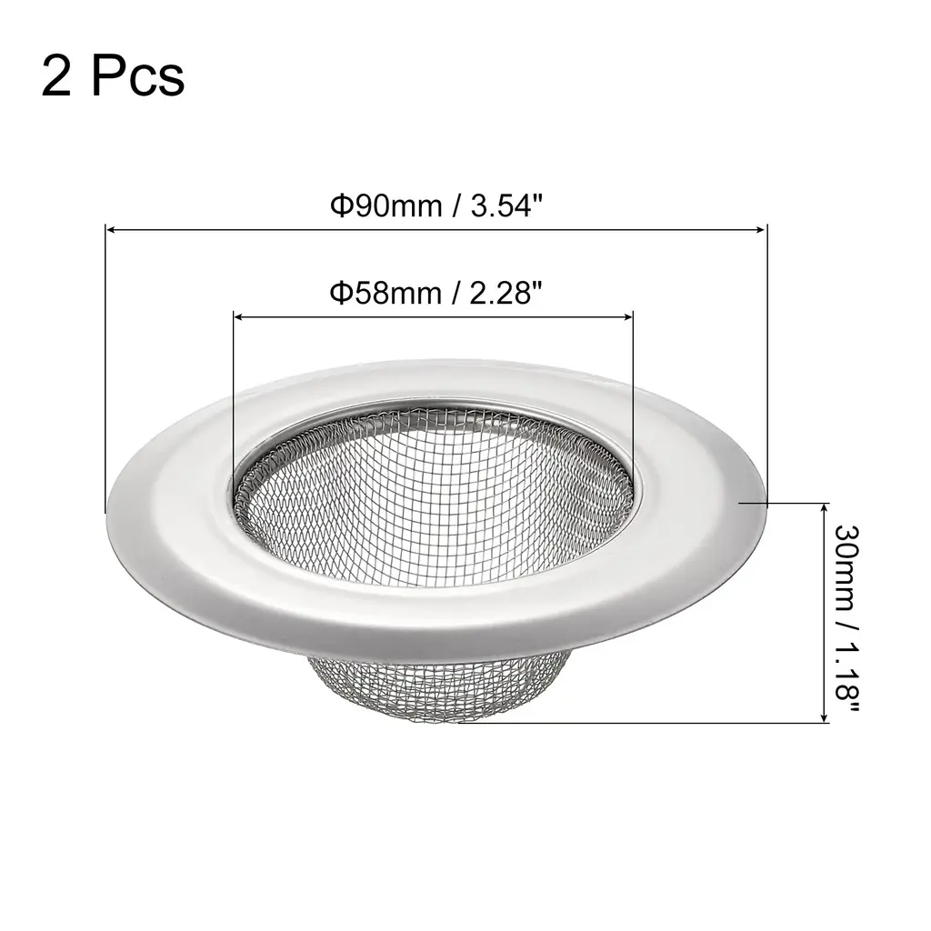 2Pcs Stainless Steel Kitchen Sink Strainer, Silver - 2.09" X 1.38" X 0.79"