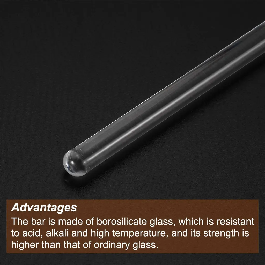 What is this?The Borosilicate Glass Sticks are widely used in laboratories or kitchens to stir liquids such as chemicals, acids, alkali, water, etc, with good acid and alkali resistance, and also good resistance to high temperatures.What will I get?Material: 3.3 Borosilicate Glass; Color: Clear; Total Size: 150 x 7mm/5.91 x 0.28 inch(L*D); In the package of: 10 x Stir RodAre there any advantages of the product?The stick is made from borosilicate glass, good resistance to acid, alkali and high temperature, and its strength are higher than ordinary glass.Round on both ends for preventing your containers from scratches, and the smooth surface brings you a comfortable grip.How to use it?The stirring rod is reusable and washable, please wash and dry it after use for next time use. What should I notice?Please check the size carefully before ordering it!