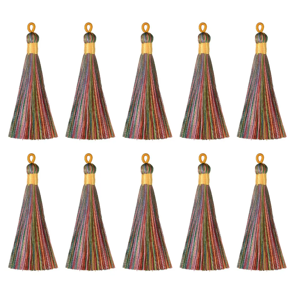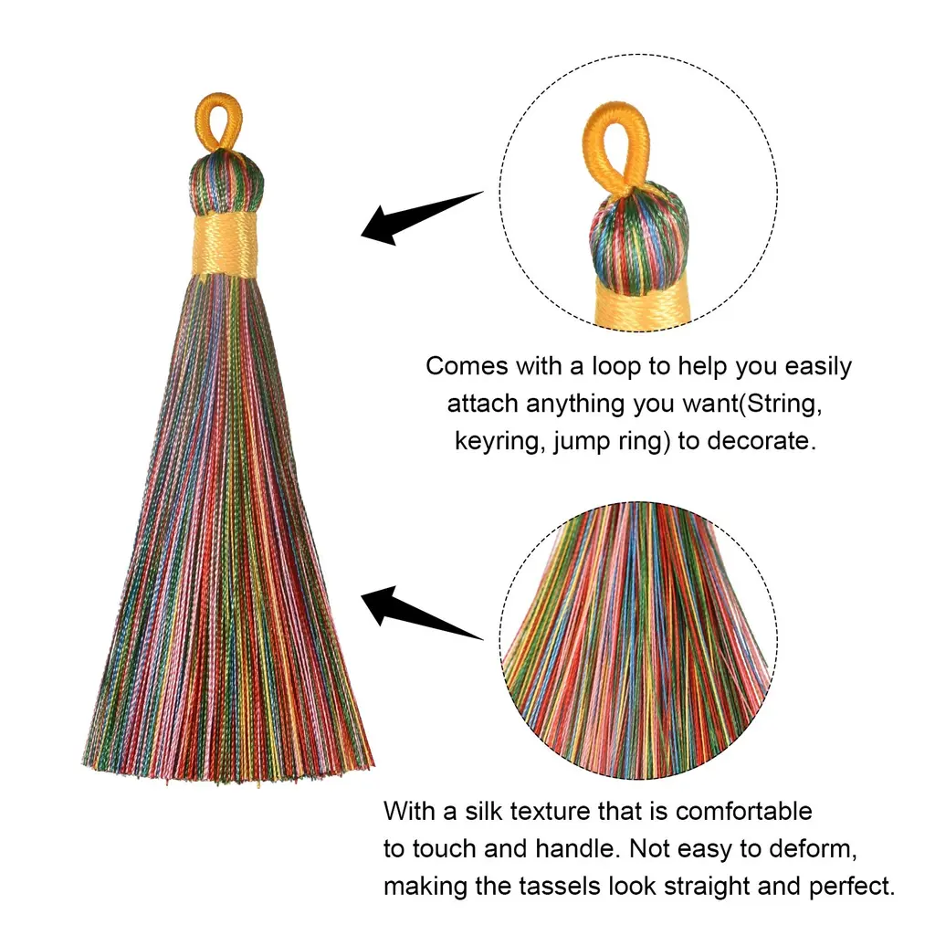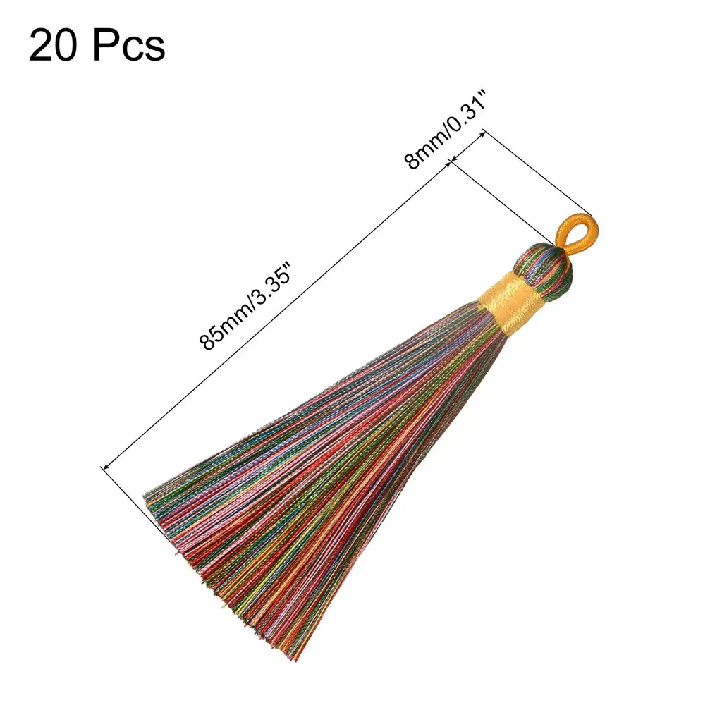 [Bookmark Tassels] - Total Size: 93mm x 10mm/3.66" x 0.39"(L*W); Tassel length: 85mm/3.35"; Loop Length: 8mm/0.31"; Color: Multi Yellow; Package Included: 20Pcs x Bookmark Tassels.[Material] - Made of polyester material that is sturdy and durable. It has excellent properties such as long-term use without ironing, wear resistance, non-deformation, high strength, and high elastic recovery.[Feature] - The tassel with a silky smooth texture that is comfortable to touch and handle. The tassel thread is tightly wound and not easy to fall off, so that the tassel hang high and looks straight and perfect.[Easy to Use] - Designed with knotted loop to help you easily attach anything you want to decorate without wasting time looking for a string or worrying about splitting the thread as it goes through the body.[Application] - Great for bookmark tassels, keychain tassels, graduation caps, bag accessories, zipper pulls, curtain pendants, clothing design, jewelry making and handmade diy accessories crafting.Description:Made of polyester material that is sturdy and durable. It has excellent properties such as long-term use without ironing, wear resistance, non-deformation, high strength, and high elastic recovery.The tassel with a silky smooth texture that is comfortable to touch and handle. The tassel thread is tightly wound and not easy to fall off, so that the tassel hang high and looks straight and perfect.Designed with knotted loop to help you easily attach anything you want to decorate without wasting time looking for a string or worrying about splitting the thread as it goes through the body.Great for bookmark tassels, keychain tassels, graduation caps, bag accessories, zipper pulls, curtain pendants, clothing design, jewelry making and handmade diy accessories crafting.Product Specifications:Material: PolyesterColor: Multi YellowTotal Size: 93mm x 10mm/3.66" x 0.39"(L*W)Tassel length: 85mm/3.35"Loop Length: 8mm/0.31"Package Included:20Pcs x Bookmark Tassels