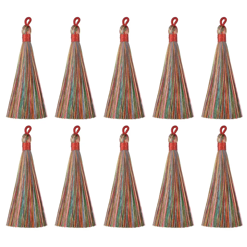 [Bookmark Tassels] - Total Size: 93mm x 10mm/3.66" x 0.39"(L*W); Tassel length: 85mm/3.35"; Loop Length: 8mm/0.31"; Color: Multi Red; Package Included: 20Pcs x Bookmark Tassels.[Material] - Made of polyester material that is sturdy and durable. It has excellent properties such as long-term use without ironing, wear resistance, non-deformation, high strength, and high elastic recovery.[Feature] - The tassel with a silky smooth texture that is comfortable to touch and handle. The tassel thread is tightly wound and not easy to fall off, so that the tassel hang high and looks straight and perfect.[Easy to Use] - Designed with knotted loop to help you easily attach anything you want to decorate without wasting time looking for a string or worrying about splitting the thread as it goes through the body.[Application] - Great for bookmark tassels, keychain tassels, graduation caps, bag accessories, zipper pulls, curtain pendants, clothing design, jewelry making and handmade diy accessories crafting.Description:Made of polyester material that is sturdy and durable. It has excellent properties such as long-term use without ironing, wear resistance, non-deformation, high strength, and high elastic recovery.The tassel with a silky smooth texture that is comfortable to touch and handle. The tassel thread is tightly wound and not easy to fall off, so that the tassel hang high and looks straight and perfect.Designed with knotted loop to help you easily attach anything you want to decorate without wasting time looking for a string or worrying about splitting the thread as it goes through the body.Great for bookmark tassels, keychain tassels, graduation caps, bag accessories, zipper pulls, curtain pendants, clothing design, jewelry making and handmade diy accessories crafting.Product Specifications:Material: PolyesterColor: Multi RedTotal Size: 93mm x 10mm/3.66" x 0.39"(L*W)Tassel length: 85mm/3.35"Loop Length: 8mm/0.31"Package Included:20Pcs x Bookmark Tassels