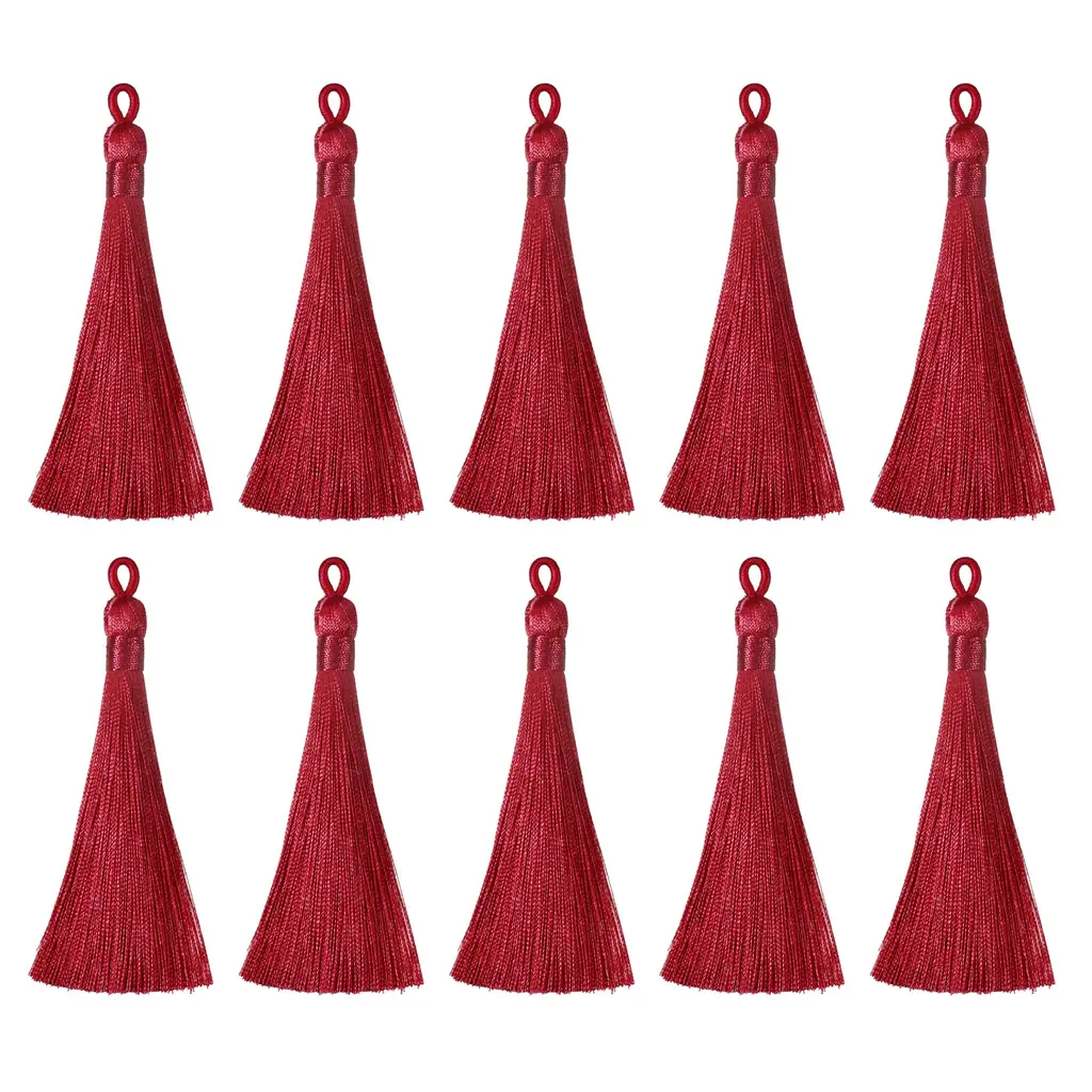3.7" Silky Bookmark Tassels With Loop For Diy Craft Accessory, 20pcs Wine Red - Wine Red - Wine Red