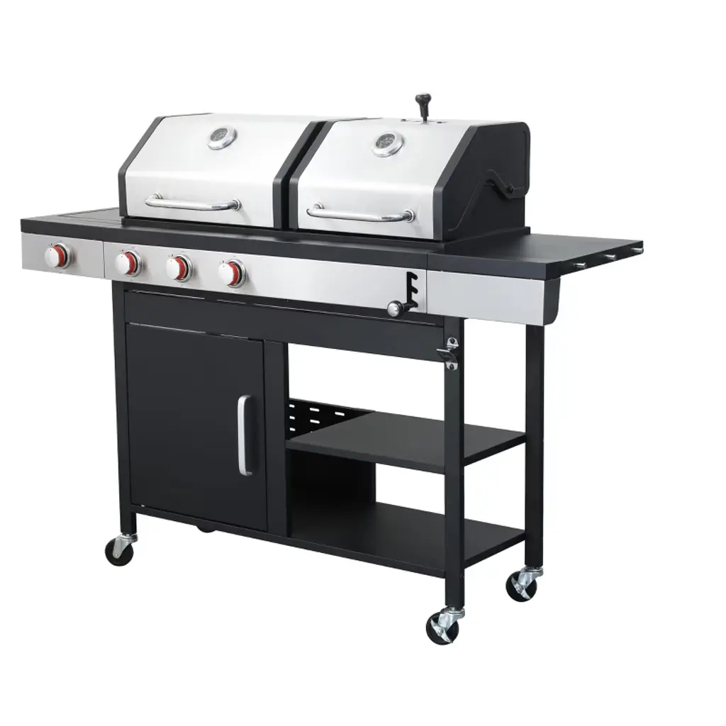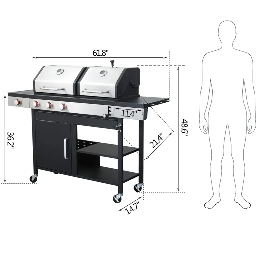 3-burner Propane Gas Bbq Grill With Side Burner,37230btu Output With Enameled Cast Iron Cooking Grids For Outdoor Barbecue, Stainless Steel