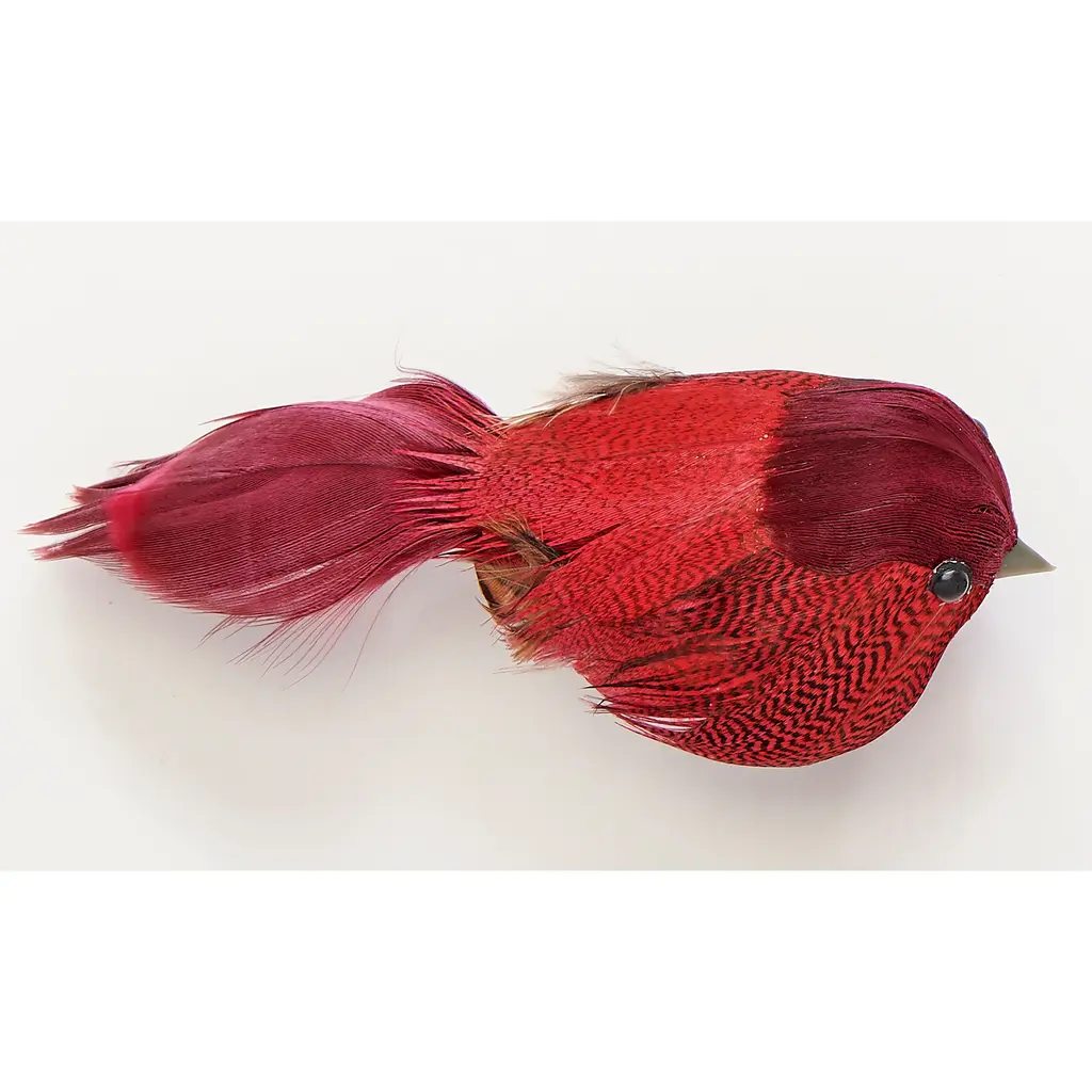 Enhance your décor with this charming 3" Feathered Bird with Metal Clip in Red. Crafted from real feathers, this delightful bird adds a touch of natural beauty to any arrangement. Its metal clip at the bottom makes it easy to attach to wreaths, garlands, or floral displays, allowing for versatile decoration options. Whether used as a festive accent for the holidays or incorporated into everyday décor, this feathered bird is sure to enchant with its rich burgundy hue and lifelike texture.
