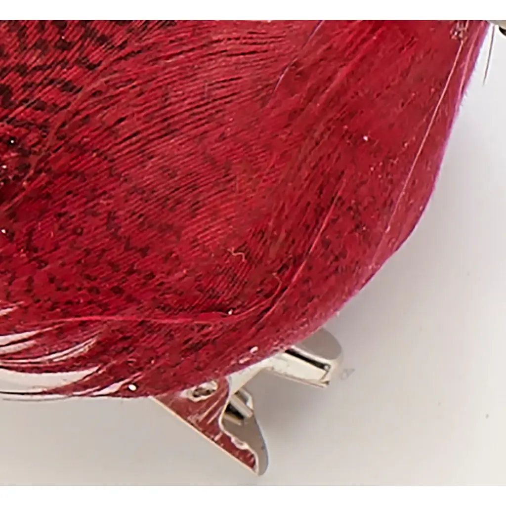 3" Feathered Bird With Metal Clip, Red, Set Of 6 - 3 - Polyester - Red
