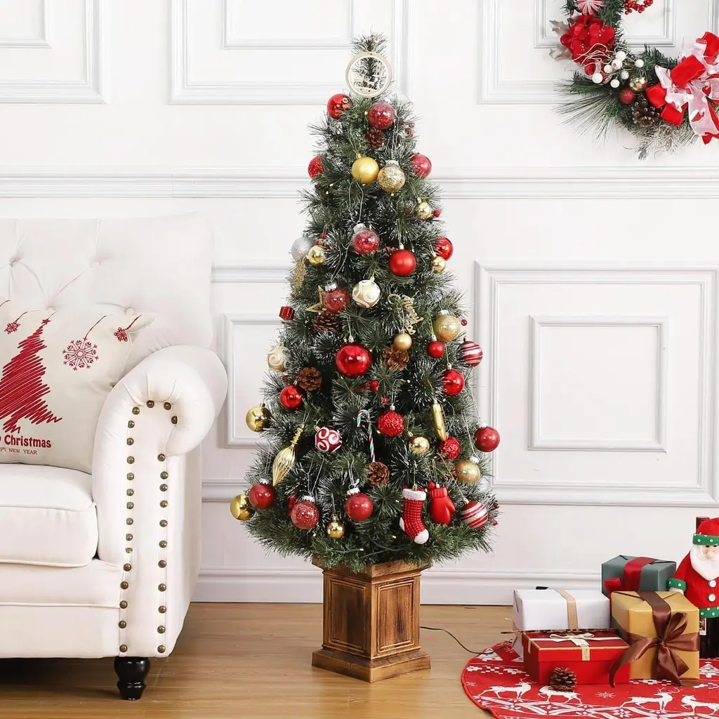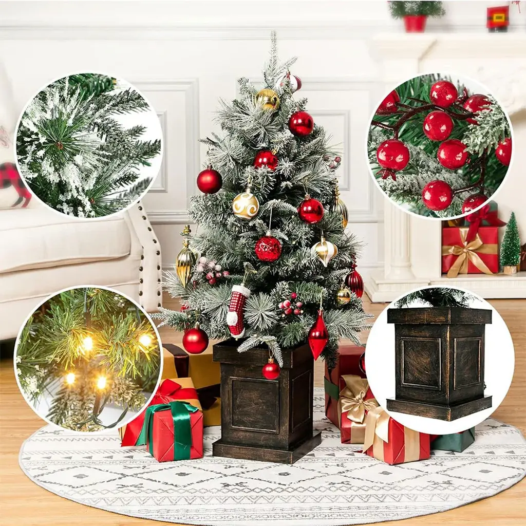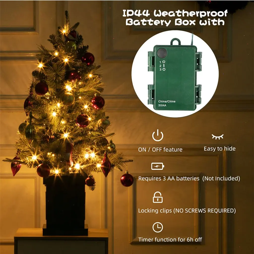 【Realistic Appeal】Our pre-lit artificial tree branches look incredibly realistic and lifelike. With elegant non-toxic PVC foliage, it creates a snowy atmosphere even without a white Christmas in the forecast. 【Multiple Lighting Modes】This 3FT Christmas tree comes with a 3*AA battery box (batteries not included) and features 8 lighting modes: Combination/In wave/Sequential/Slo glo/Chasing/Slow fade/Twinkle/Steady on. 【Timer Setting】The battery box with 78 LED lights on this Christmas tree string comes with a timer function that automatically turns off 6 hours after turning on and stays off for 18 hours. 【Sturdy Pot Stand】For your convenience, the pot base of the 3-foot artificial tree is made of cement, with the tree sitting in an attractive clear lightbox that doesn't expose the cement, making it easy to place anywhere in your home. 【Durable Materials】This tree is made from sturdy, high-quality, low-allergenic, fire-resistant needle tips, with hundreds of individually molded "Feel Real" tree branches that create a full-bodied appearance and a lifelike look and feel.