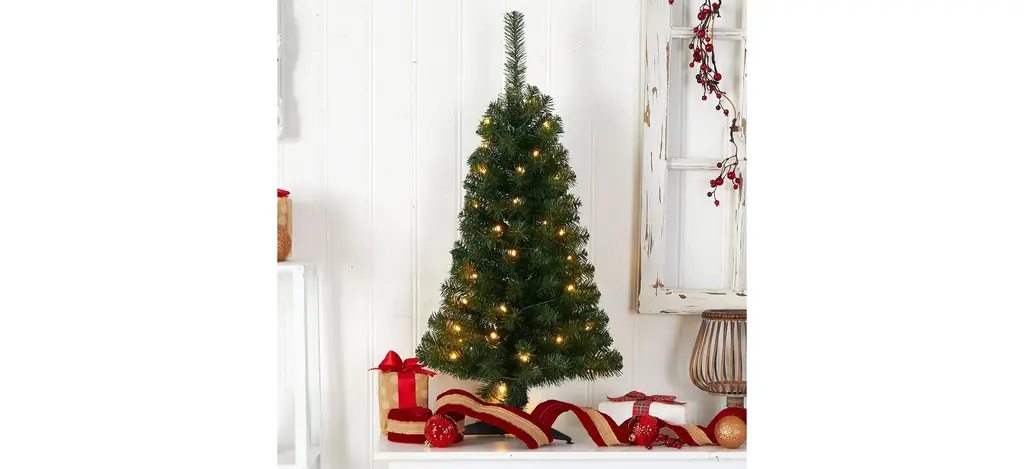 3' Green Artificial Christmas Tree With Led Lights And Bendable Branches