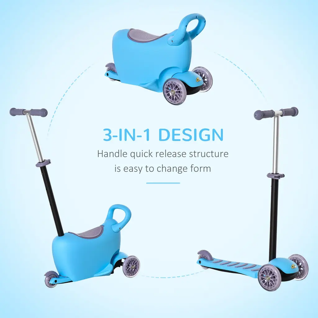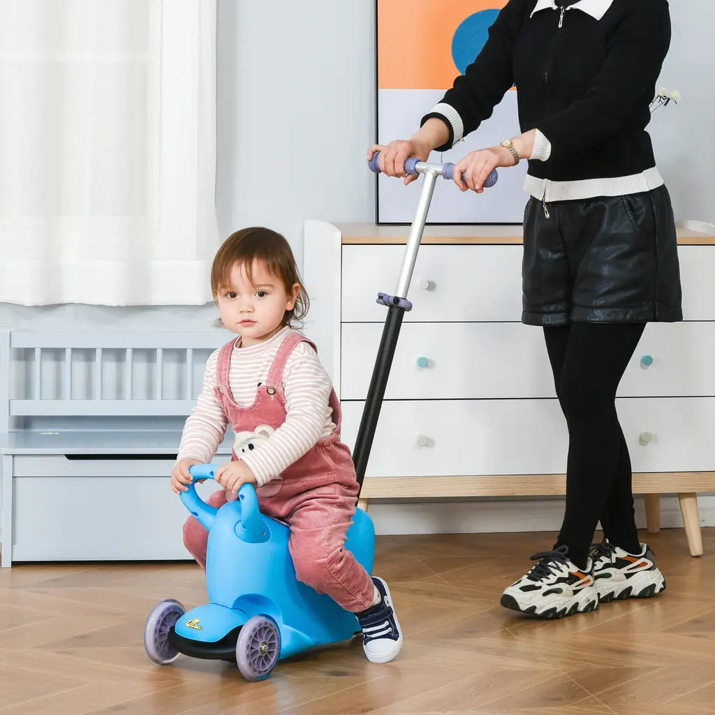 3-In-1 Kids Push Car, Scooter, And Sliding Walker With Adjustable Handlebar, Storage Seat, And 3 Wheels For Ages 2-6 Years - Blue