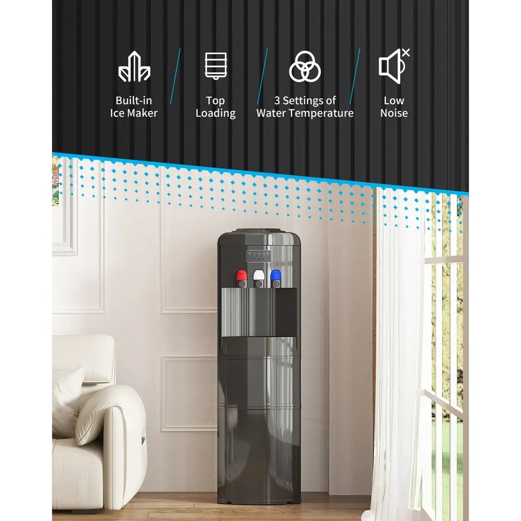 3 In 1 Water Dispenser With Ice Maker, Cold/hot Temperature, 3 Or 5 Gallon, Top Loading,black - Black