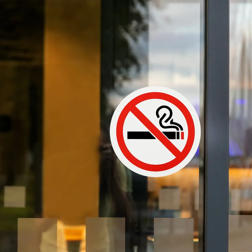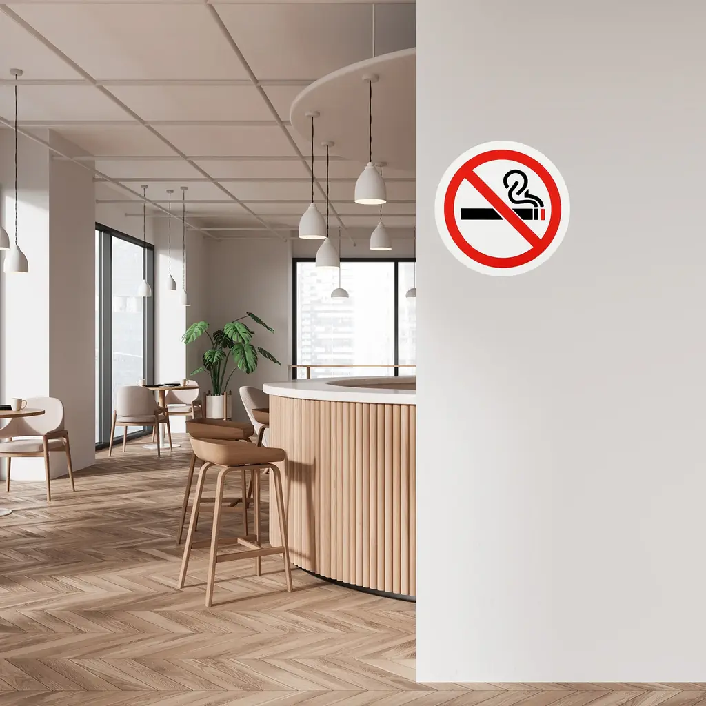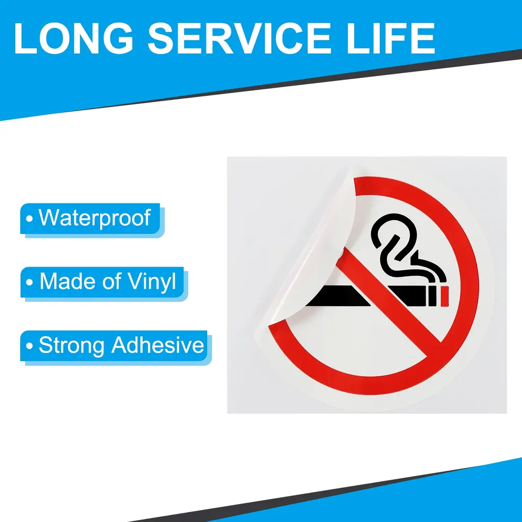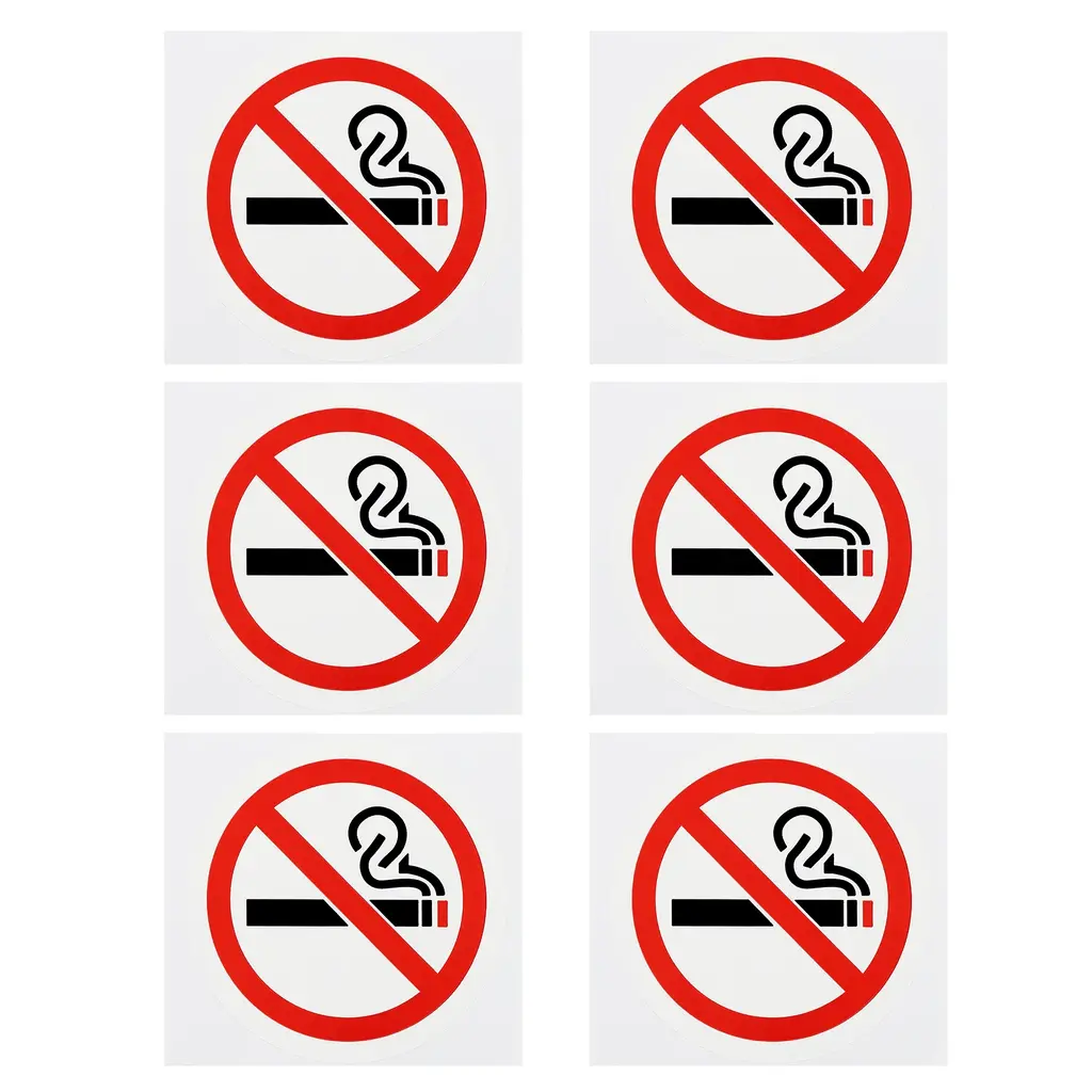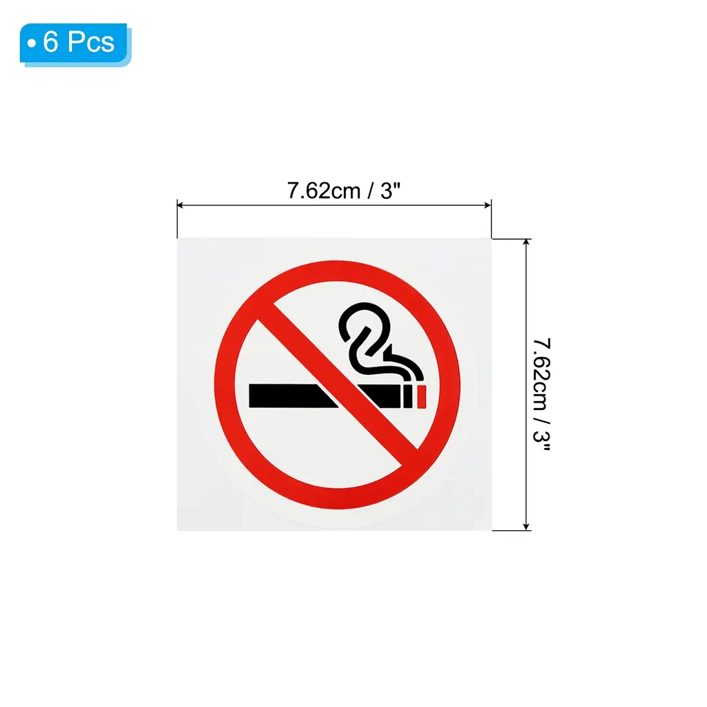 No smoking signs are often used in public places or offices to warn and remind people that smoking is not allowed in the area.Specification Material: VinylOverall Size: 8 x 8.5cm / 3.1 x 3.3 inch (L*W)Package List: 6 x No smoking signs stickerAdvantageNo Smoking signs are made of vinyl, waterproof, long service life, anti-corrosion, reflective, UV-proof, weatherproof, and non-fading.Stickers also stretch and conform easily and are removed cleanly without adhesive residue.Instruction First, determine where the sign stickers are to be installed, just take off the paper backing and place the sticker on the wall. Works great on flat surfaces such as your window, wall and door.NOTE: Please thoroughly clean the substrate to remove any dust, grease, or silicone before applying the sticker.