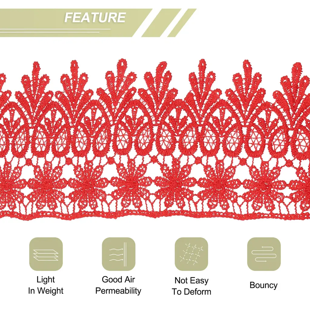 Add a touch of elegance and charm to your sewing projects, gift boxes, bouquets, and more with this 3 Inch Wide 5 Yard Lace Ribbon. Made of lightweight and breathable polyester material, this lace trim ribbon is not only easy to use but also resistant to deformation. Its embroidered flower pattern adds a unique and stylish touch to your clothing or any special occasion like weddings, birthdays, or parties. With a variety of color options available, you can choose the perfect shade to match your needs. Cut the lace to your desired length and start decorating or wrapping with ease. Please make sure to double-check the size before making your purchase.Features: