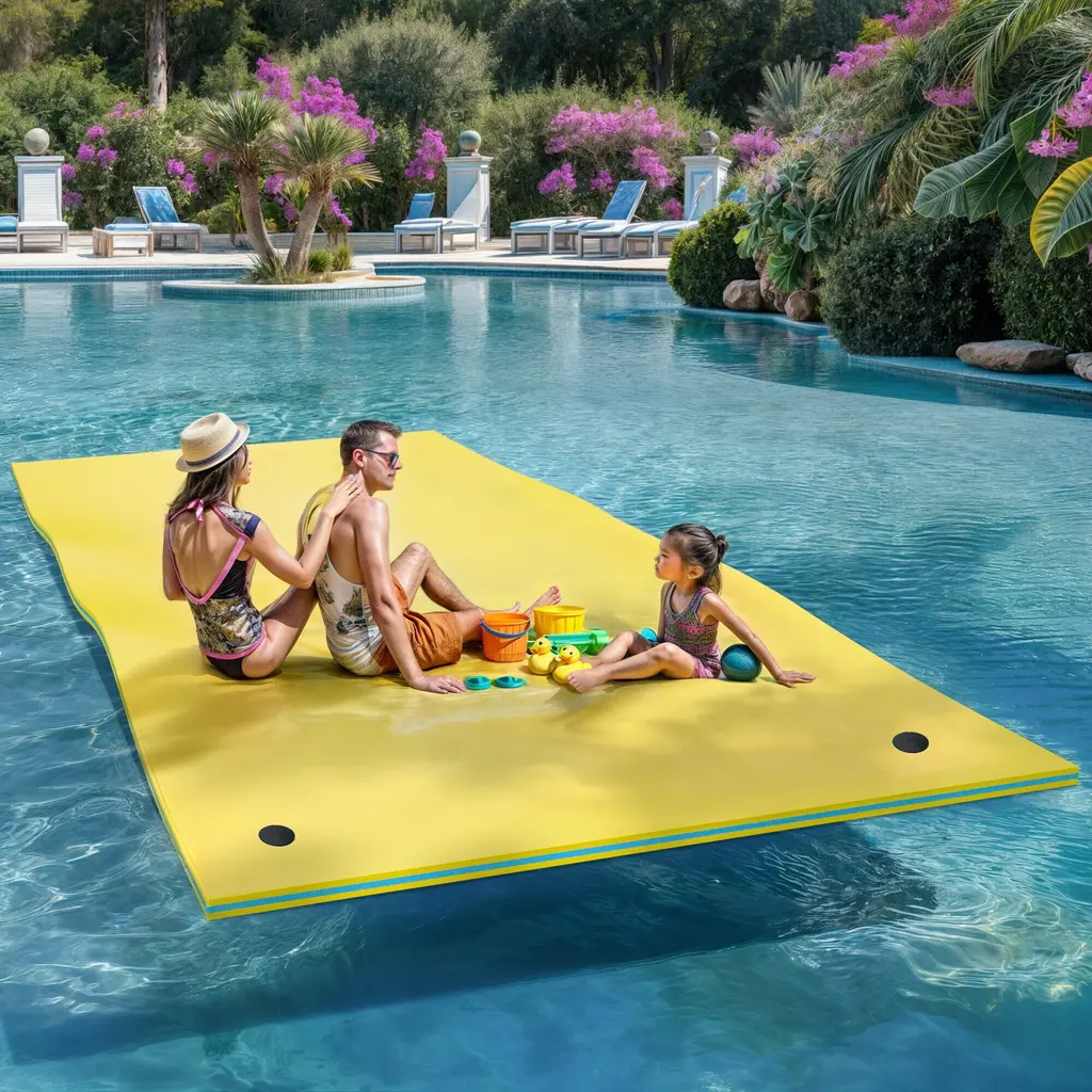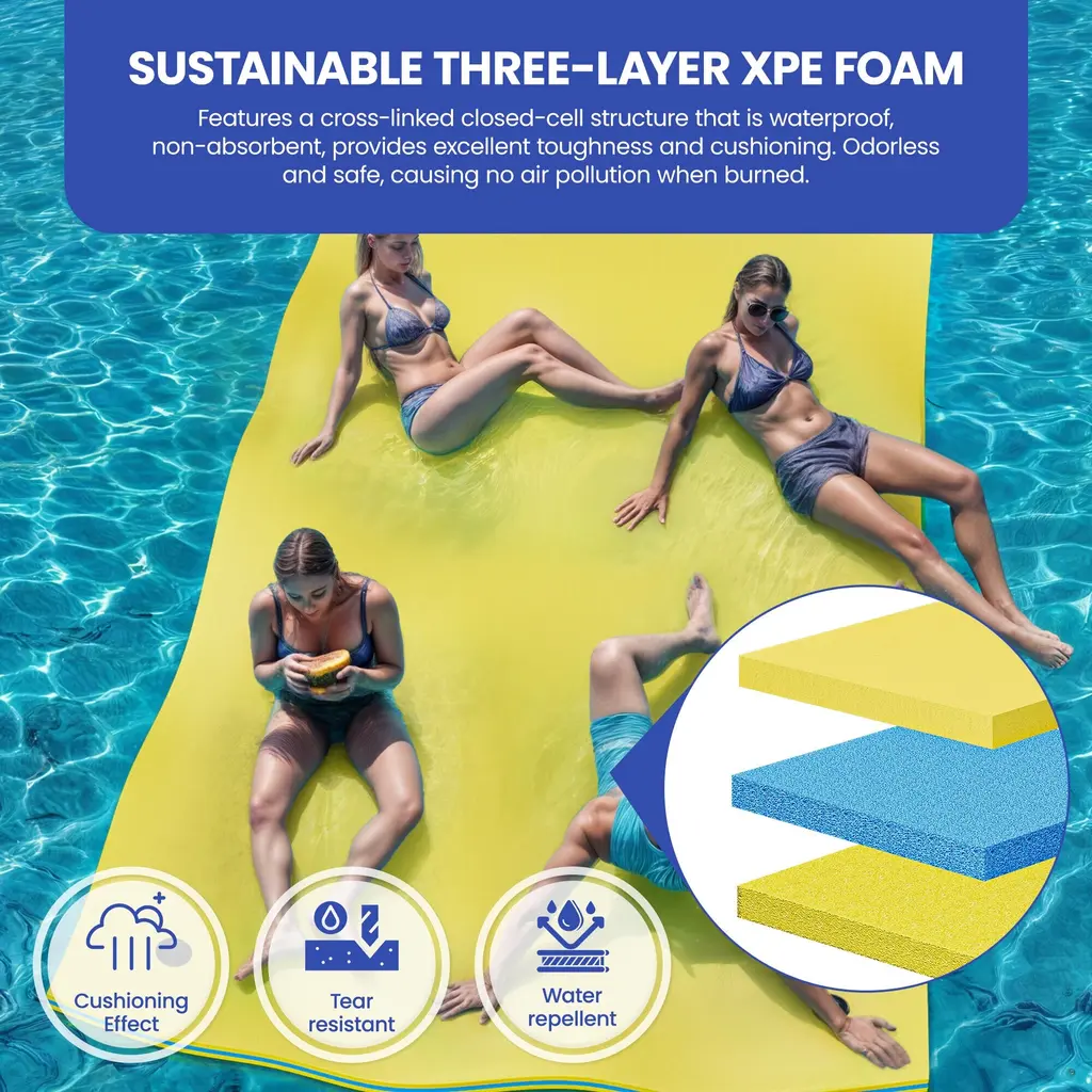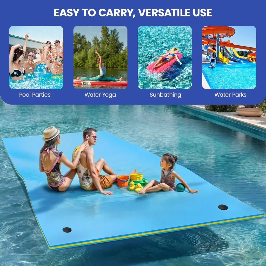 3 Layer Blue Outdoor Floating Water Pad Foam Mat 12'x6'tear Proof Pool Water Mat Xpe Floating Island - 12'x6' - Blue