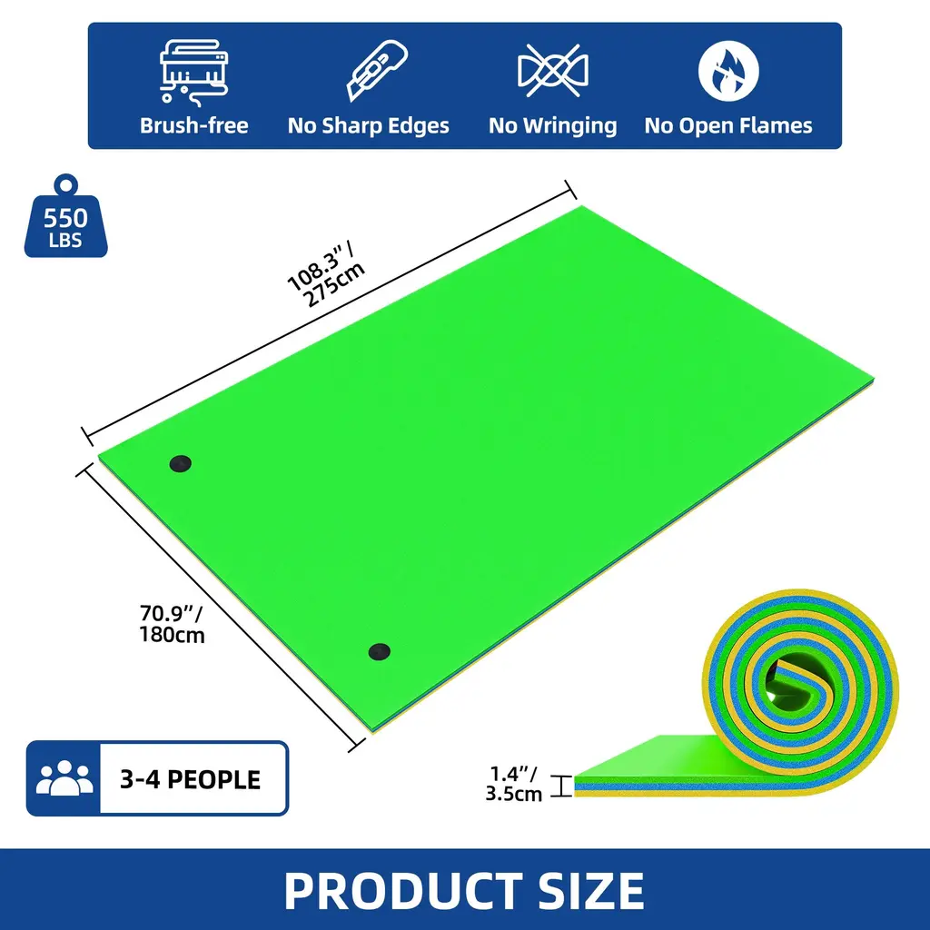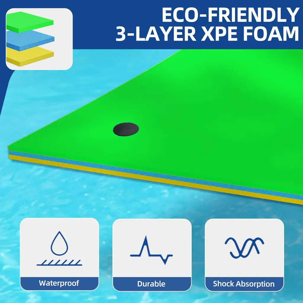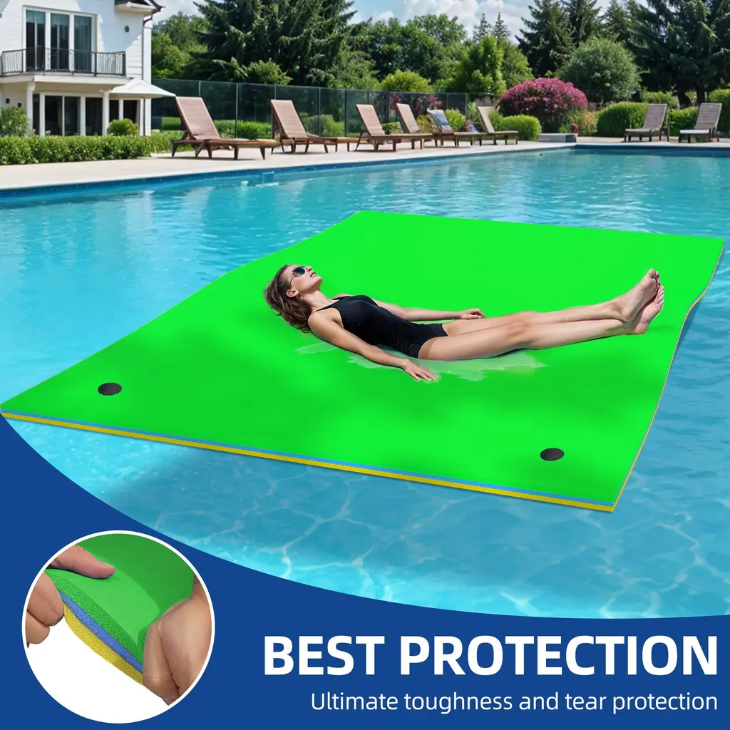 3 Layer Green Outdoor Floating Water Pad Foam Mat 9'x6'tear Proof Pool Water Mat Xpe Floating Island - 9'x6' - Green