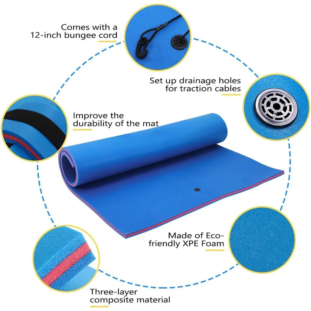 The floating mat can be used for any summer pool party, has eye-catching colors, which can provide high visibility in the high flow area and ensure your safety. This water mat is made of 1.5-inch tear-resistant and UV-resistant three-layer environmentally friendly XPE foam, so it can last for years.Features: