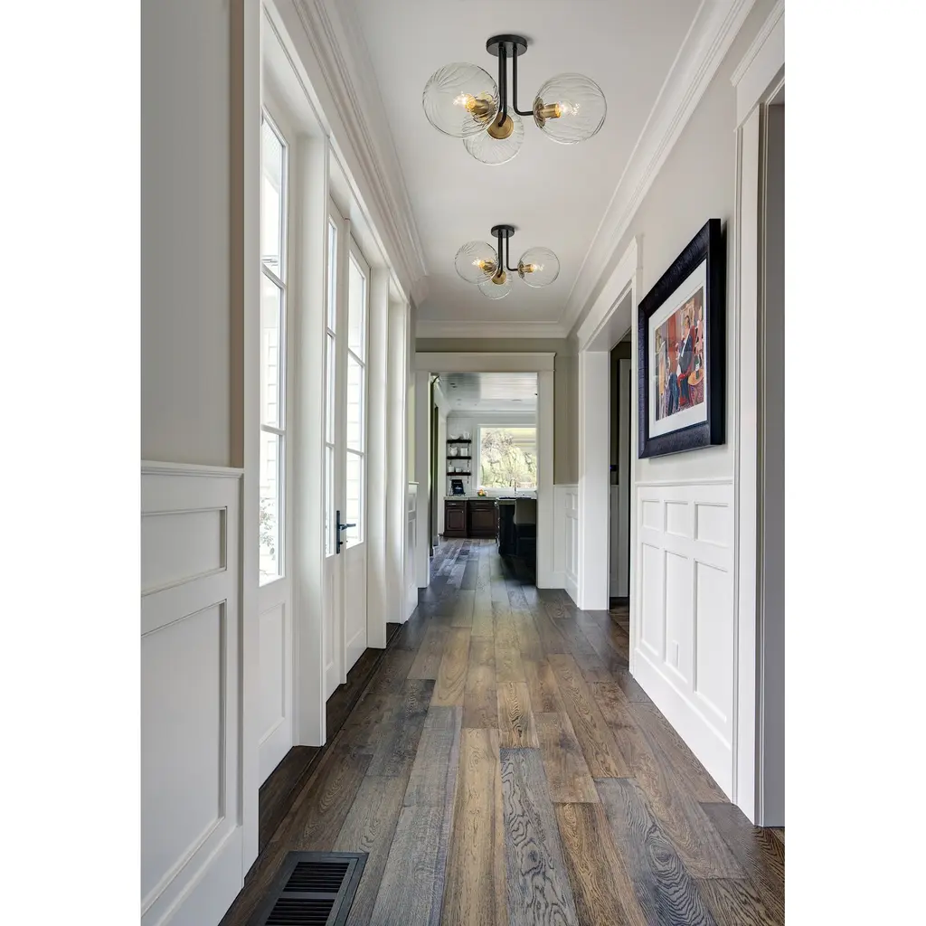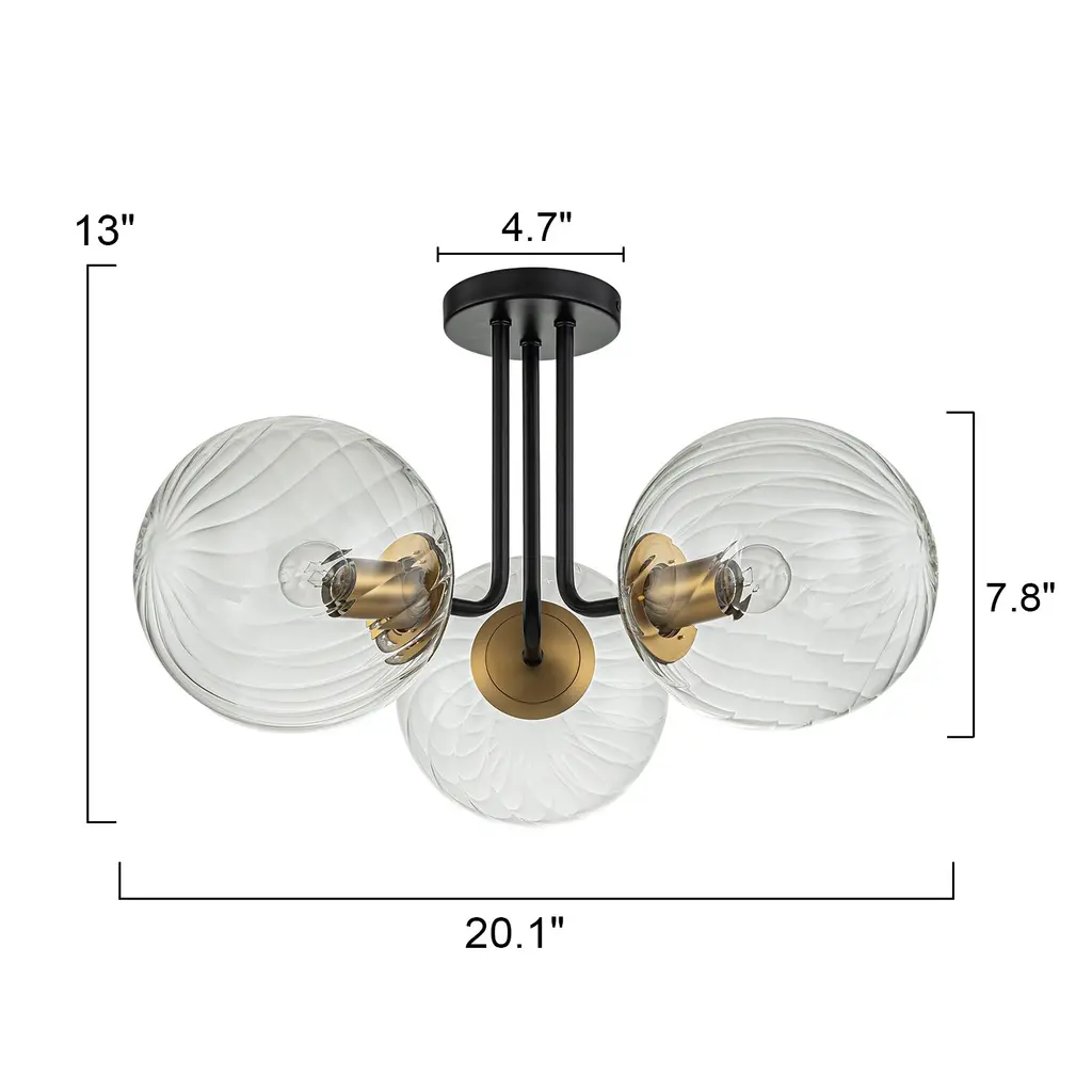 3 - Light 22'' Modern Sputnik Globe Glass Semi Flush Mount Light - Black Gold/water Glass