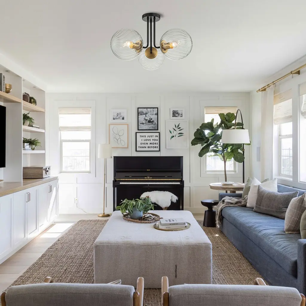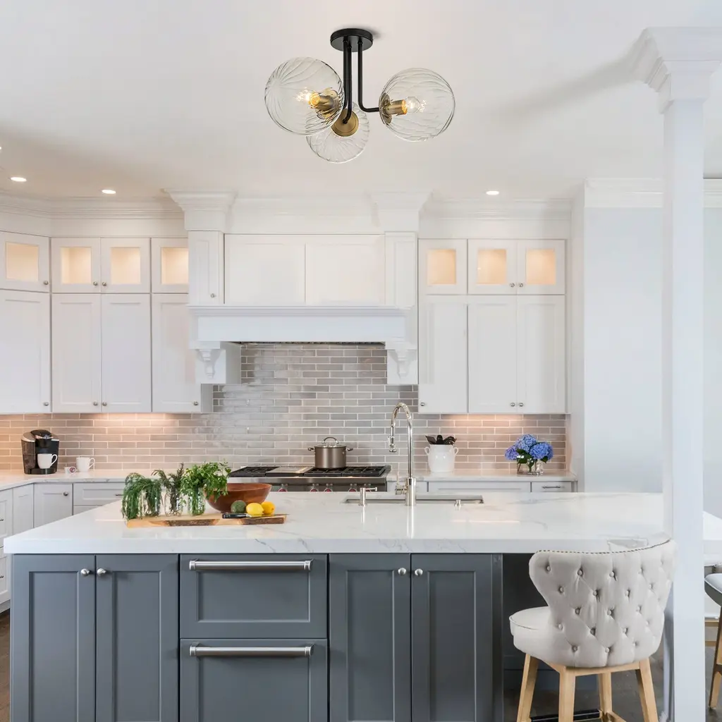 This 3 light globe ceiling light is a stylish blend of function with classic and modern appeal.The branch-like lamp stand combined with three milky white glass lampshades create a charming artistic atmosphere, filling the entire room with a subtle sense of sophistication and magnificence, perfect for a space with modern aesthetics. Bright spheres can be combined to produce soft, pleasant light. Perfect for your living room, bedroom, kitchen, bathroom, hallway, foyer, laundry room and dining room..Feature:Specifications:
