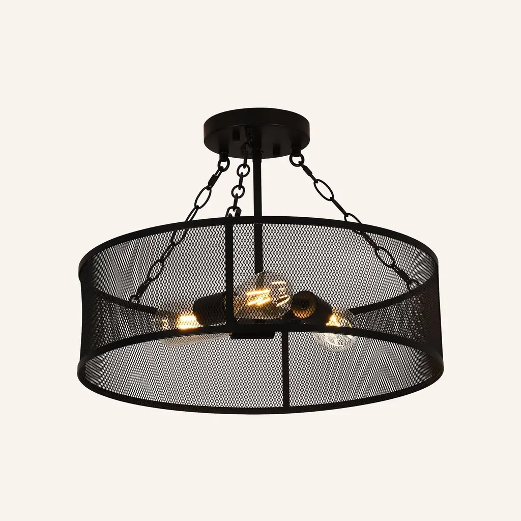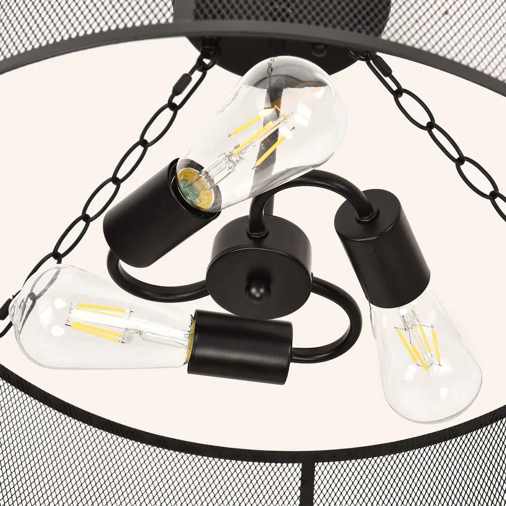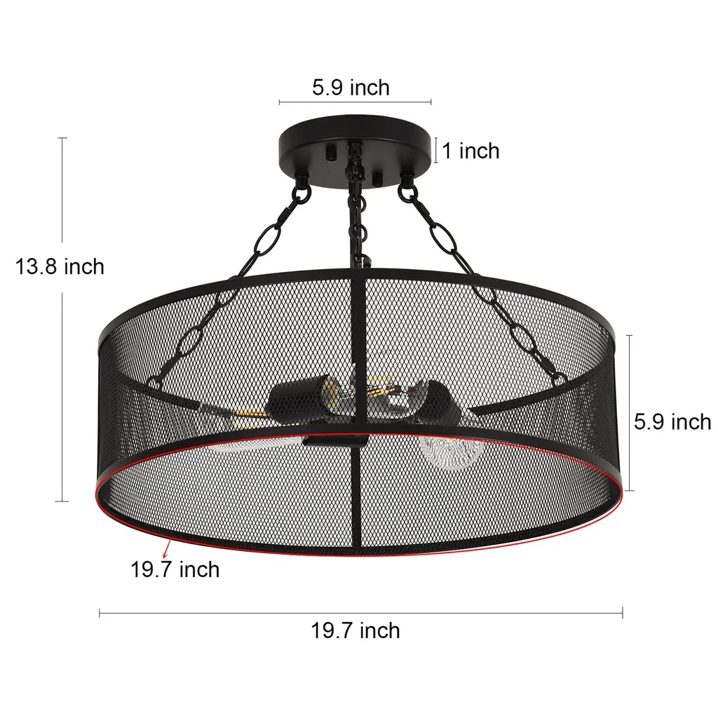 Detail:Introducing the Industrial Flush Mount Light, a perfect blend of modern design and vintage charm. This light fixture is crafted with a sturdy black metal frame and a protective mesh cage, offering a sleek and industrial look that complements any decor. With dimensions of 19.7 inches in diameter and 13.8 inches in height, it's designed to make a statement without overwhelming your space. The flush mount ceiling light features three E26 sockets, allowing you to customize your lighting with your choice of bulbs (not included). The 5.9-inch ceiling mount and 1-inch chain length provide a versatile installation option, making it suitable for various ceiling heights. Add a touch of industrial elegance to your home with this flush mount light. Feature: