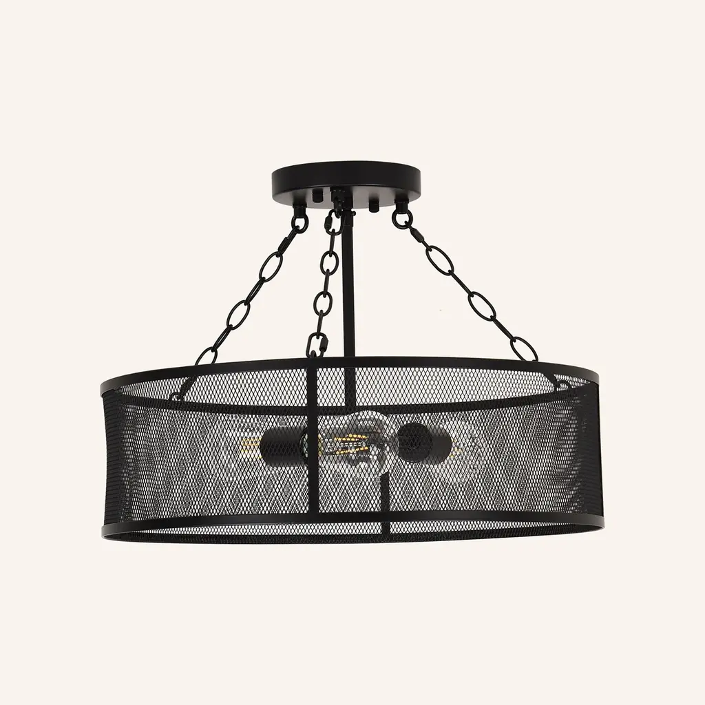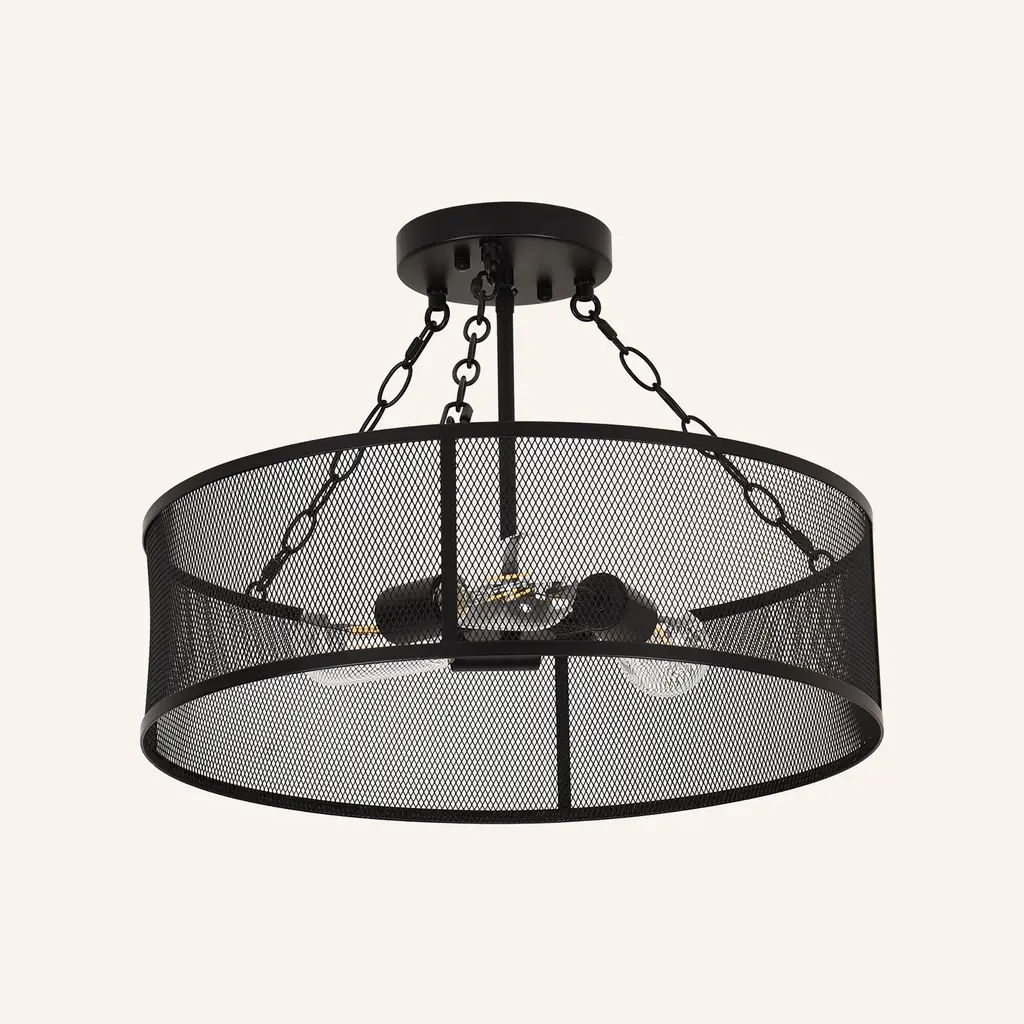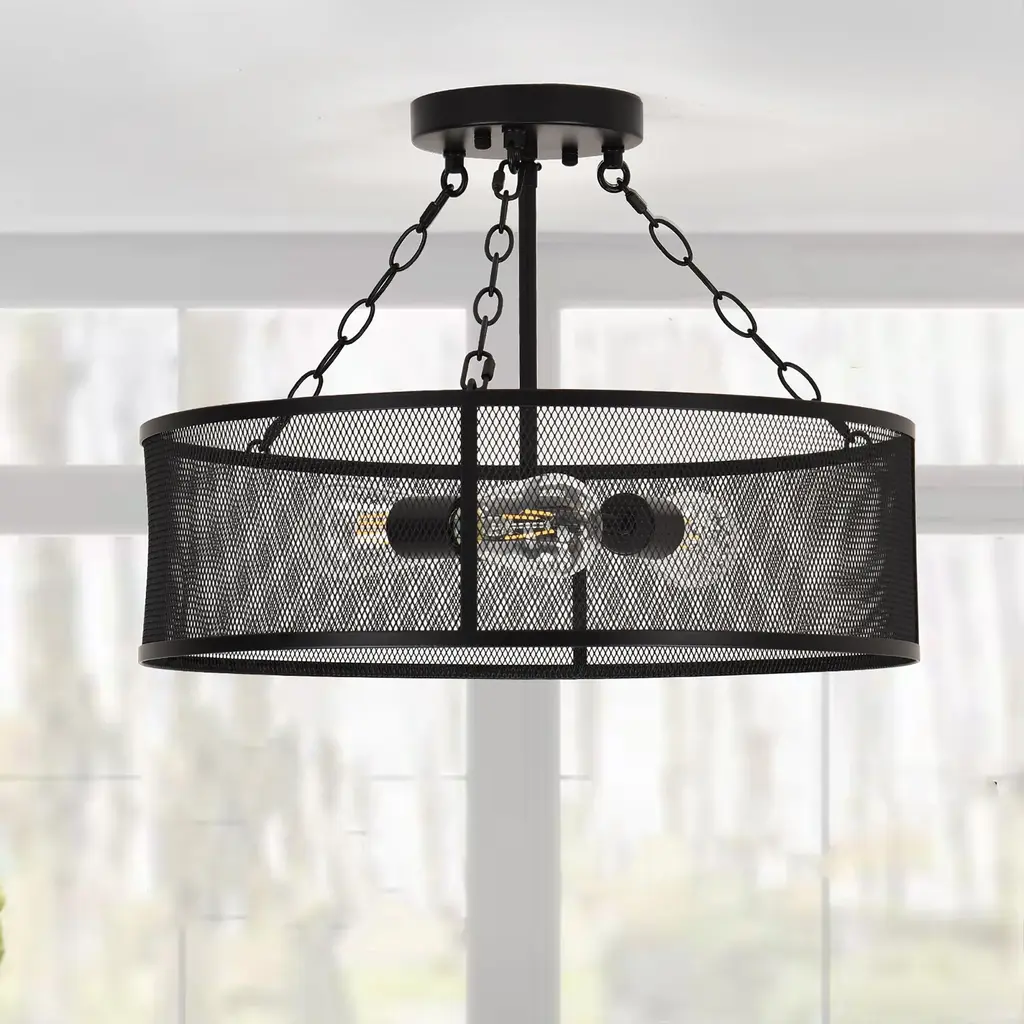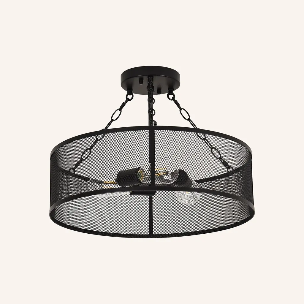 Detail:Introducing the Industrial Flush Mount Light, a perfect blend of modern design and vintage charm. This light fixture is crafted with a sturdy black metal frame and a protective mesh cage, offering a sleek and industrial look that complements any decor. With dimensions of 19.7 inches in diameter and 13.8 inches in height, it's designed to make a statement without overwhelming your space. The flush mount ceiling light features three E26 sockets, allowing you to customize your lighting with your choice of bulbs (not included). The 5.9-inch ceiling mount and 1-inch chain length provide a versatile installation option, making it suitable for various ceiling heights. Add a touch of industrial elegance to your home with this flush mount light. Feature:
