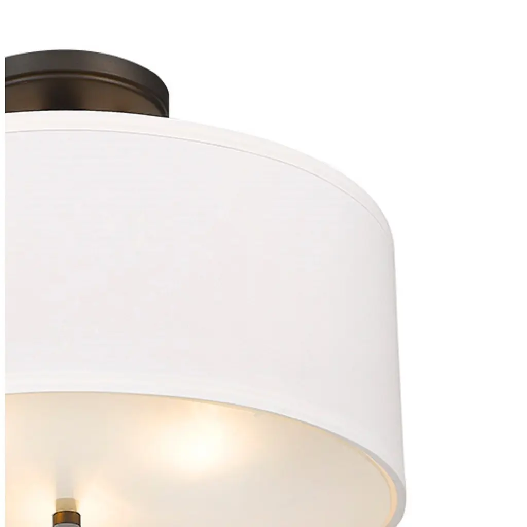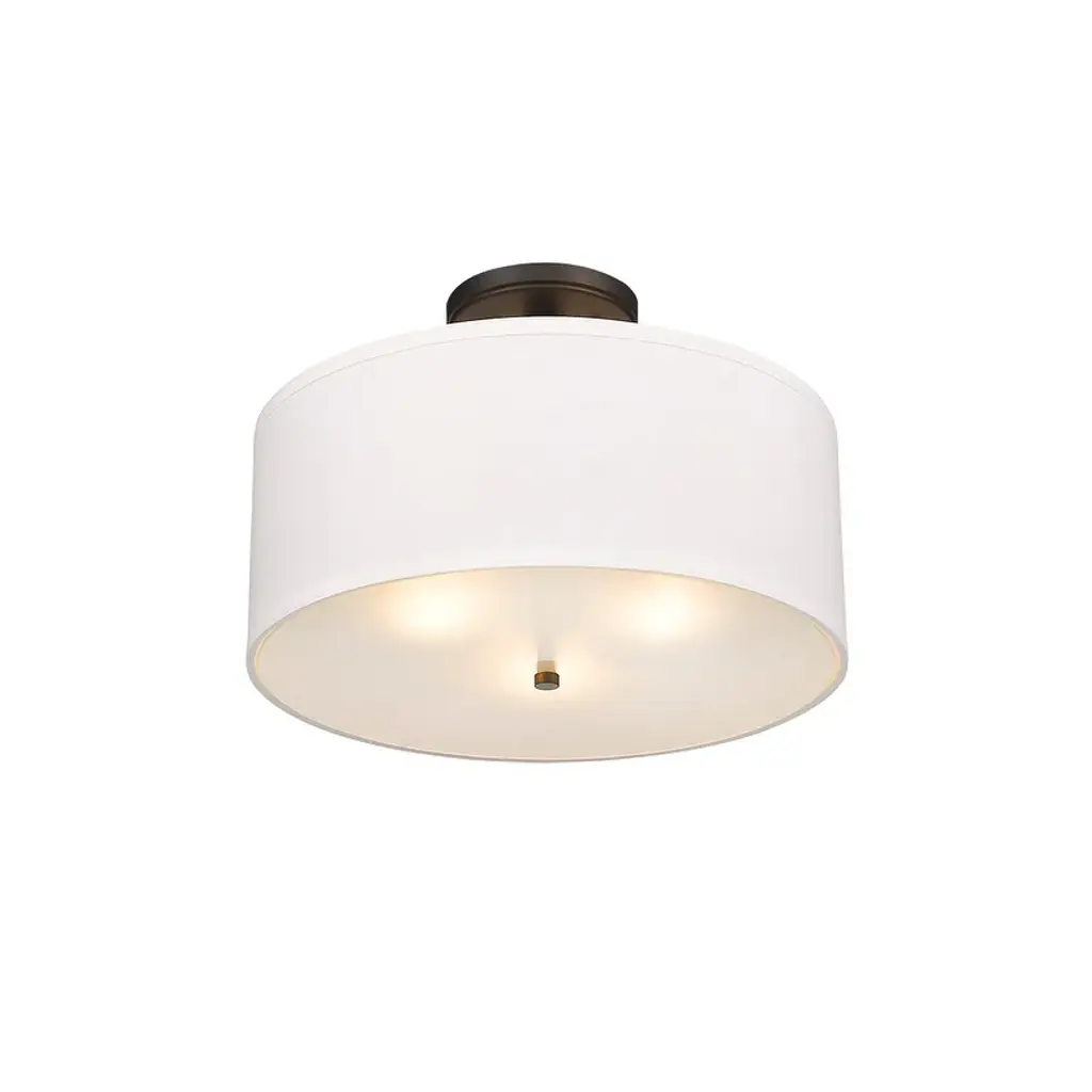 3 Light Simple Fabric Drum Semi-Flush Light In Oiled Bronze - Oil Rubbed Bronze