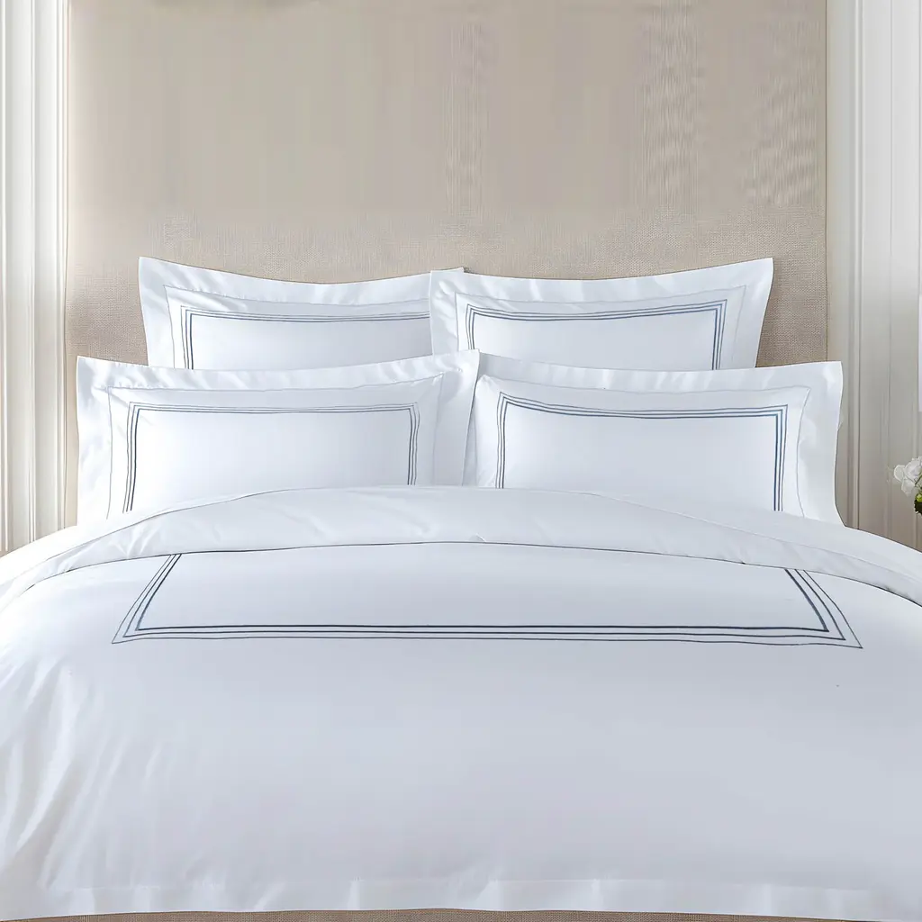Indulge in understated luxury with the 3 Lines Top Sheet from The Lino. Its sophisticated embroidered border of three fine lines adds a structured, timeless elegance to your bedding. Made from 100% Egyptian cotton, with a crisp 400-thread count percale weave, it offers a breathable and ultra-soft feel for the ultimate comfort. Highlights