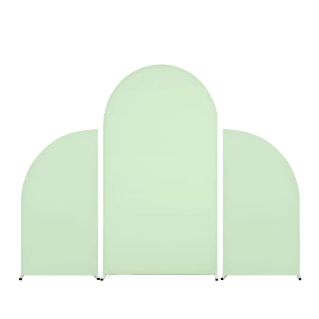 3-Piece Arch Backdrop Cover Set ¨C Double-Sided Stretch Spandex Wedding Arch Covers with Round & Half-Moon Tops for Birthdays, Baby Showers, Banquets (5FT + 7.2FT + 5FT, Light Green)Key Features:Complete 3-Piece Arch Cover SetThis versatile set includes one U-shaped arch cover (7.2 feet wide) and two half-moon arch covers (5 feet wide each), designed to elegantly dress up any arch structure. Made from high-quality stretch spandex, the fabric fits snugly on various arch shapes and sizes, offering a seamless and polished look.Elegant Double-Sided DesignFeaturing a double-sided, seamless construction in a soft light green hue, these covers provide a flawless backdrop from every angle. The rich color and smooth finish add a touch of sophistication to weddings, baby showers, birthdays, and formal banquets.Easy to Install & TransportThe lightweight and wrinkle-resistant fabric allows for quick setup and teardown. Each cover includes a zippered bottom for secure attachment to the arch frame. The set is portable and comes with a compact carrying case, making it ideal for event planners and frequent hosts.Multi-Occasion VersatilityPerfect for a wide range of events including wedding ceremonies, photo backdrops, proposal setups, bridal and baby showers, anniversary parties, birthdays, and corporate gatherings. The stretchable material adapts to different arch styles¡ªround, square, or heart-shaped.Machine Washable & DurableCrafted from resilient spandex fabric, these arch covers resist wrinkles and maintain their shape throughout your event. They can be hand washed or machine washed on cold for easy cleaning and reuse.Specifications:Material: Stretch SpandexColor: Light GreenSet Includes: 1x U-Shaped Cover (7.2 ft), 2x Half-Moon Covers (5 ft each)Installation: Zippered Closure for Secure FitCare: Hand or Machine Washable (Cold Water)Weight: 3.93 lbsPortability: Includes Carry Bag