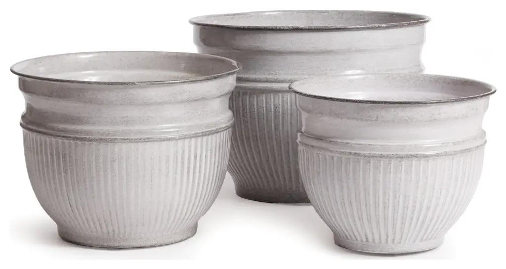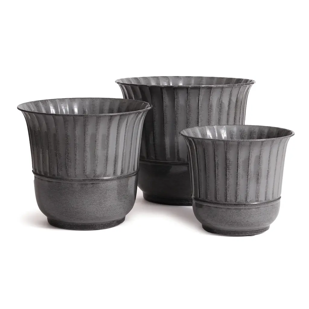 Made of a durable metal, glazed and baked at 300 degrees, so they are able to withstand the elements in the extreme. With a dynamic, antiqued enamel-like coating. Perfect for well, the Terrace!