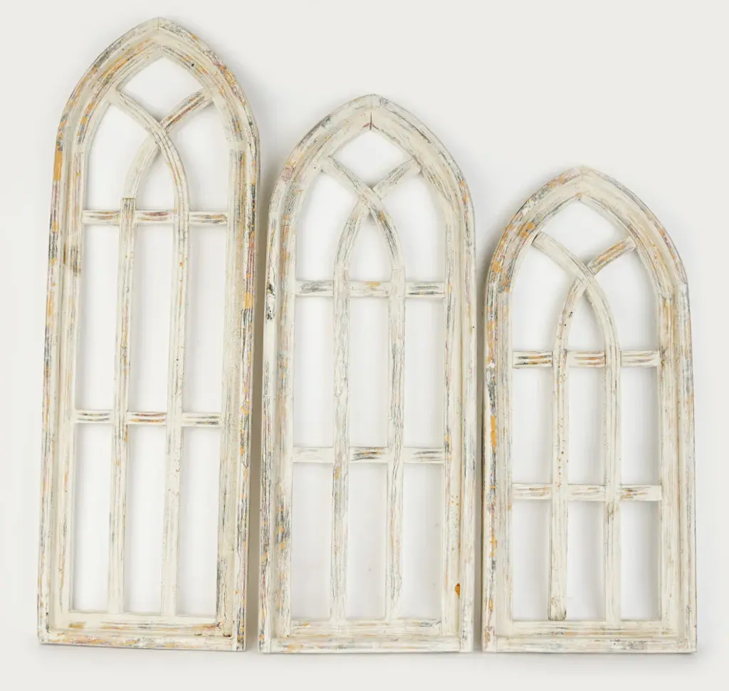3-Piece Cathedral Farmhouse Wood Window, Set