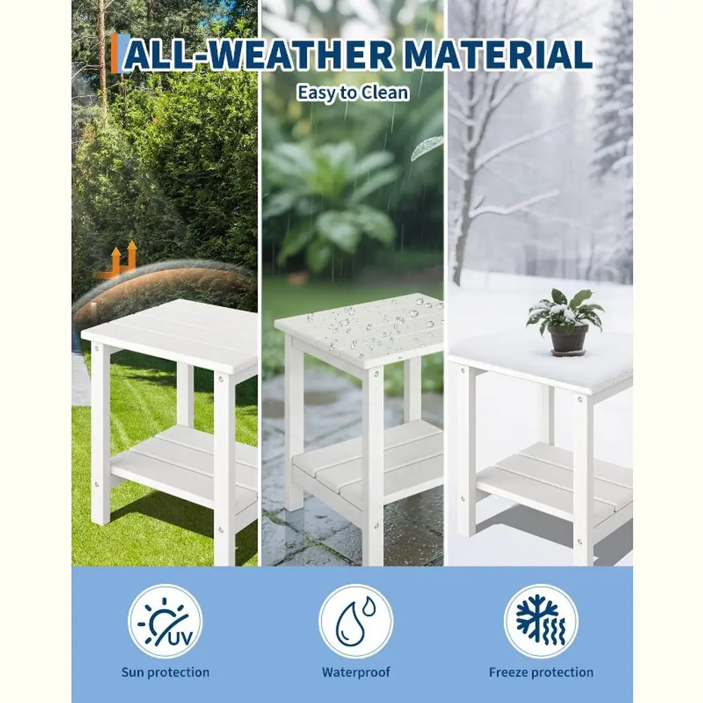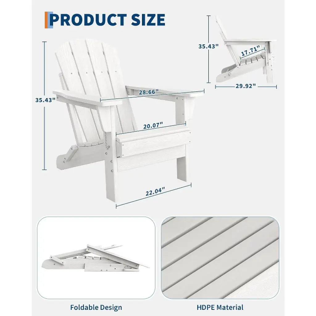 3-piece Folding Adirondack Chairs Set Of 2 With Side Table, Hdpe Plastic Outdoor Chairs With Wood Texture,white