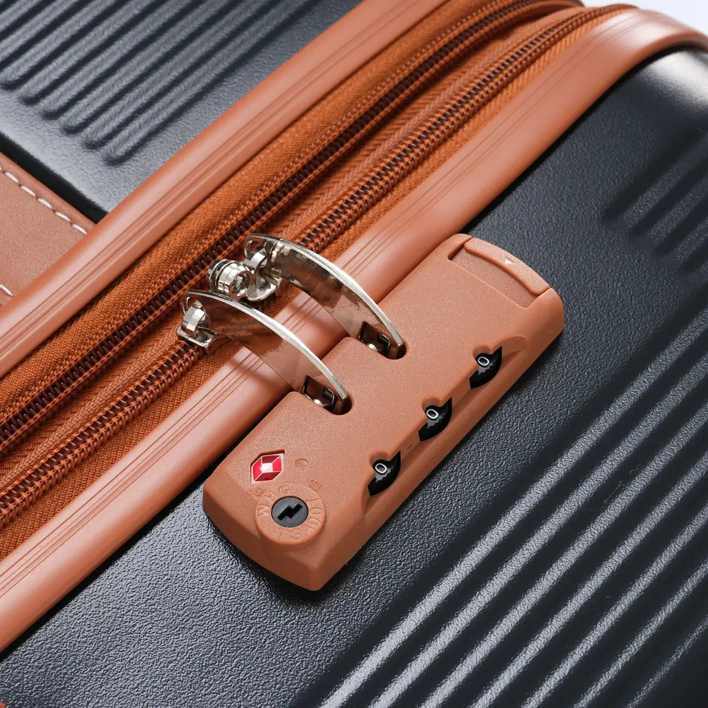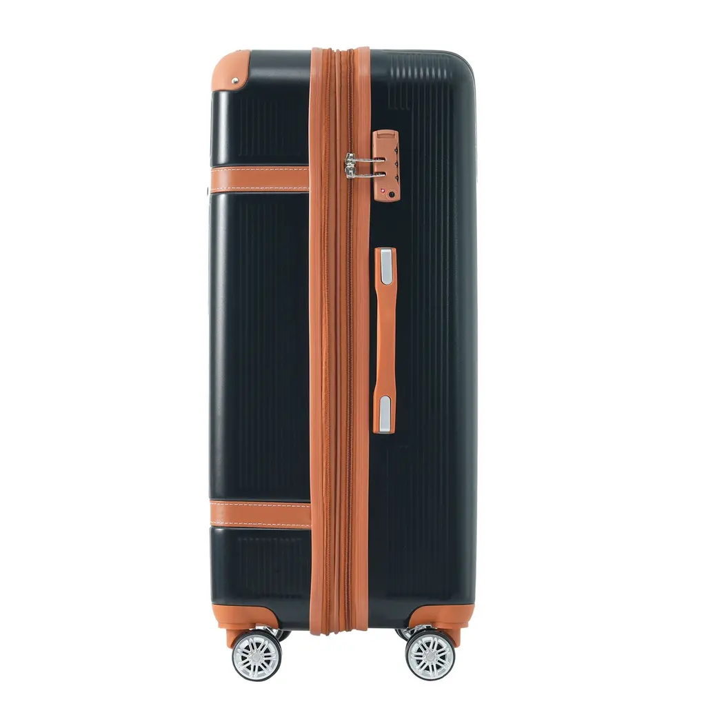 Designed for both style and durability, this ABS luggage features three-dimensional vertical stripes and reinforced corner guards that resist scratches and absorb impacts. The TSA-approved lock ensures your belongings stay secure, while the waterproof 210D lining protects items inside from moisture.Features:Quick Glance Points: