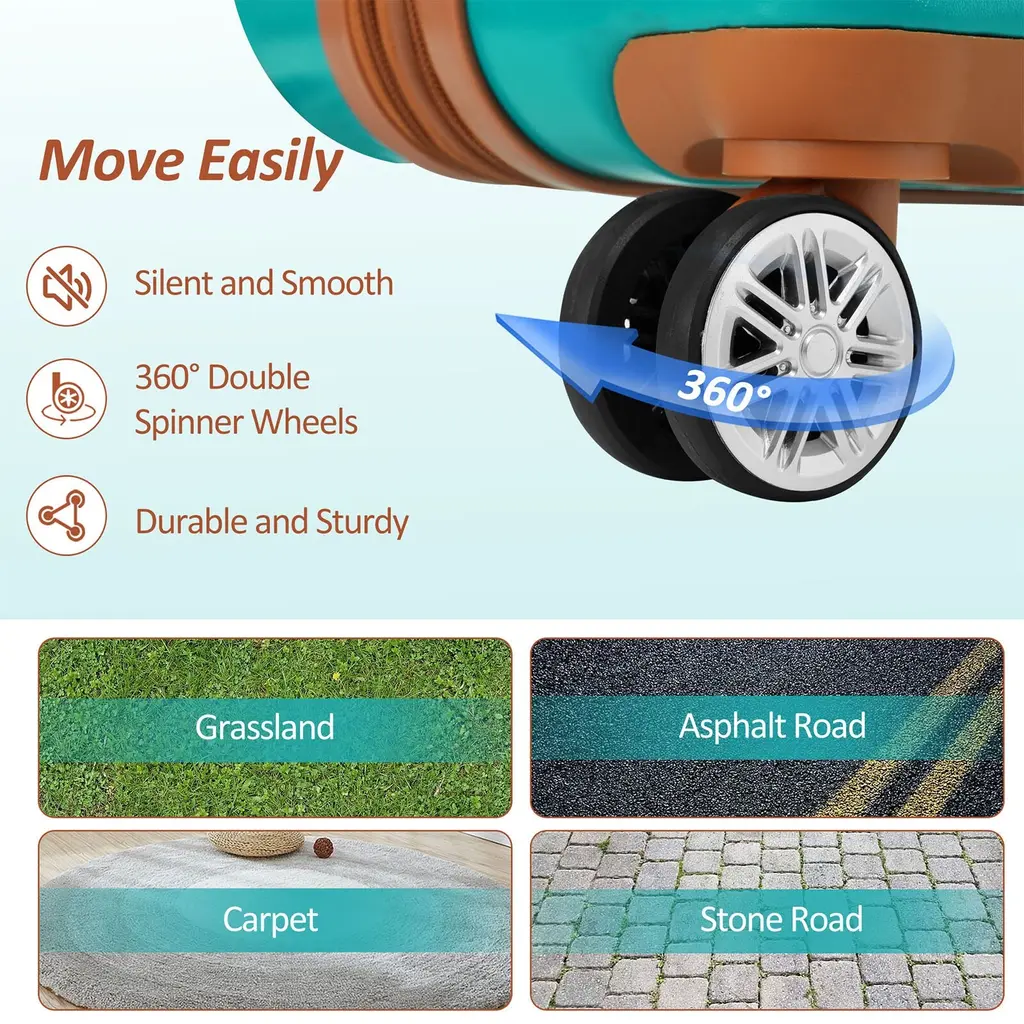 3 Piece Hardside Lightweight Luggage Sets With Double Spinner 8 Wheels And Tsa Lock - Green