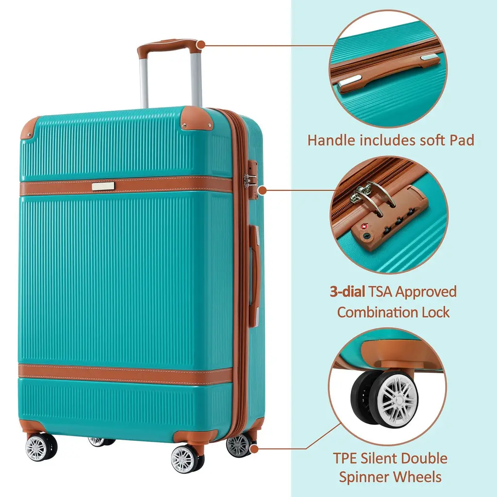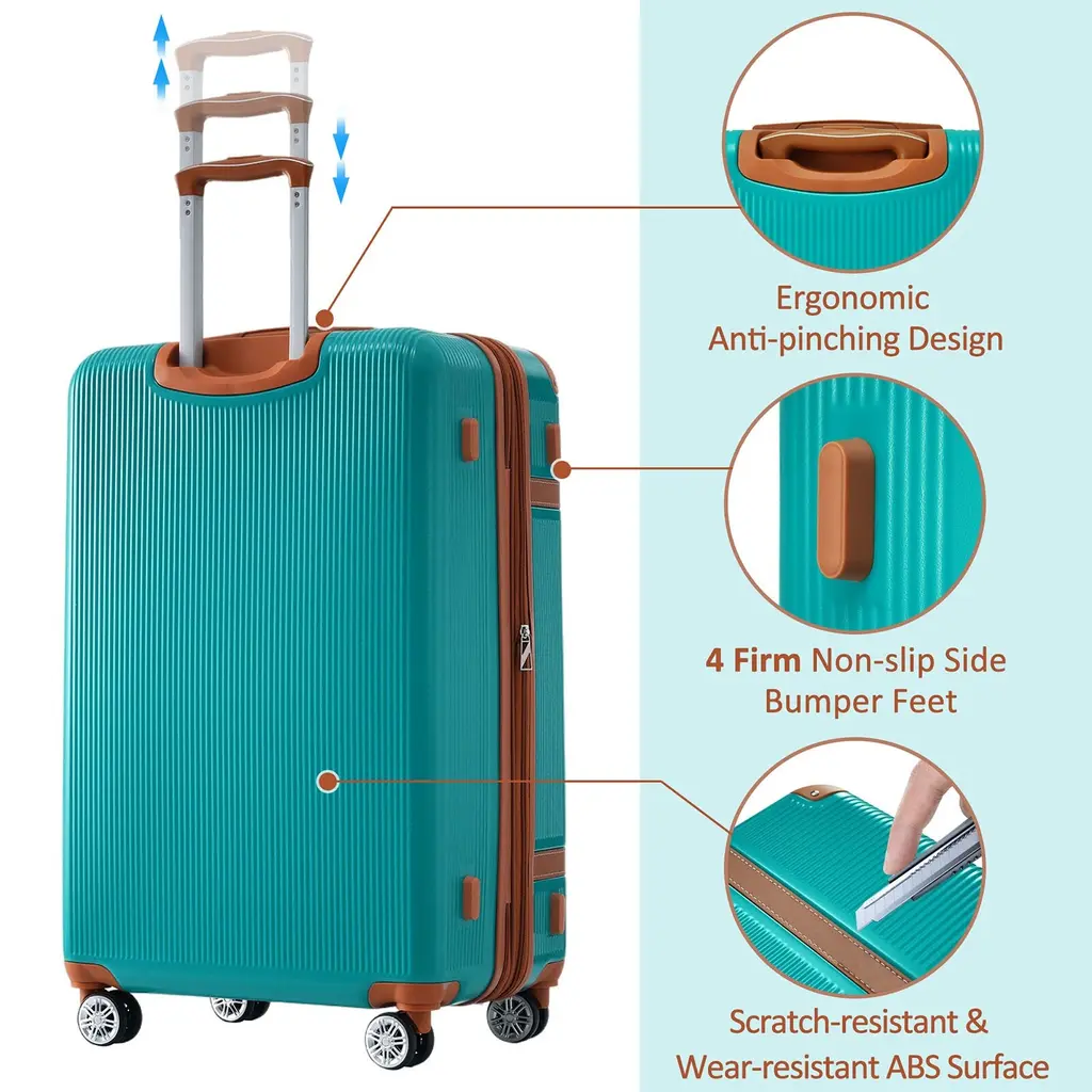 Designed for both style and durability, this ABS luggage features three-dimensional vertical stripes and reinforced corner guards that resist scratches and absorb impacts. The TSA-approved lock ensures your belongings stay secure, while the waterproof 210D lining protects items inside from moisture.Features:Quick Glance Points:
