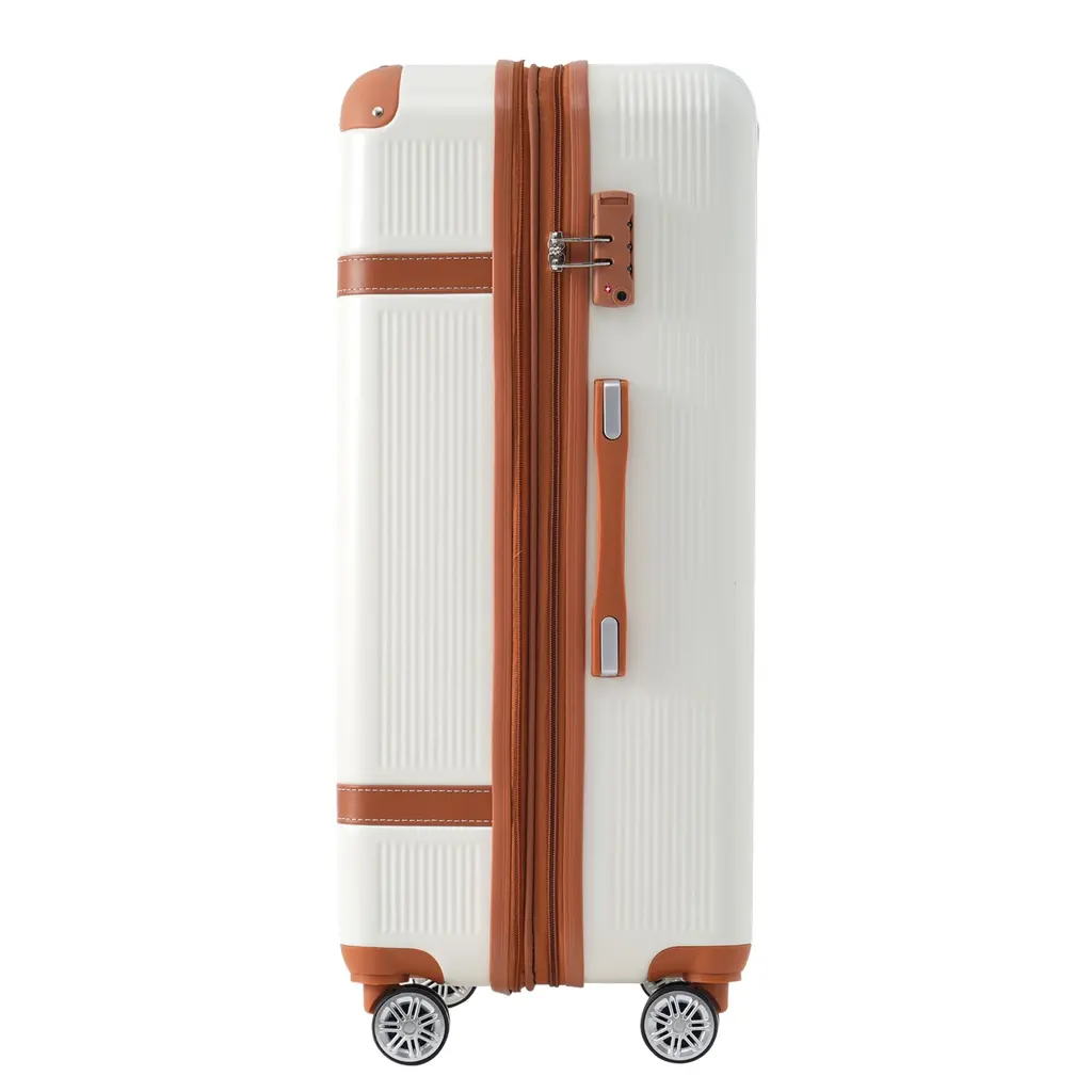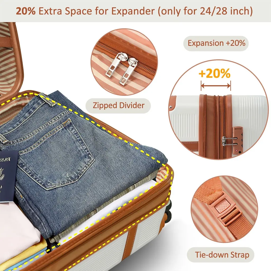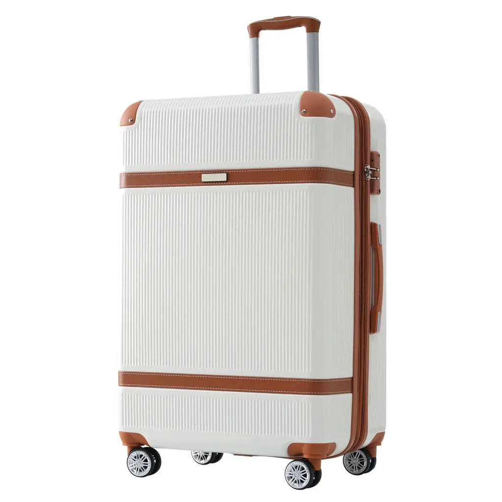 Designed for both style and durability, this ABS luggage features three-dimensional vertical stripes and reinforced corner guards that resist scratches and absorb impacts. The TSA-approved lock ensures your belongings stay secure, while the waterproof 210D lining protects items inside from moisture.Features:Quick Glance Points: