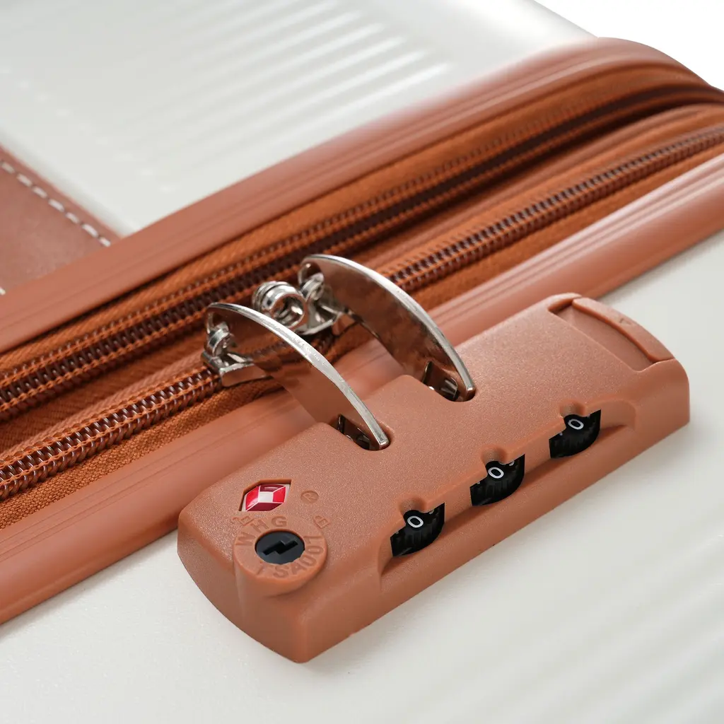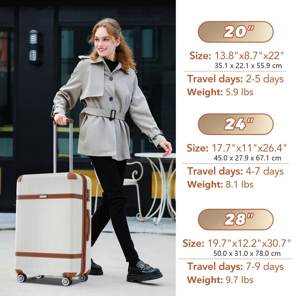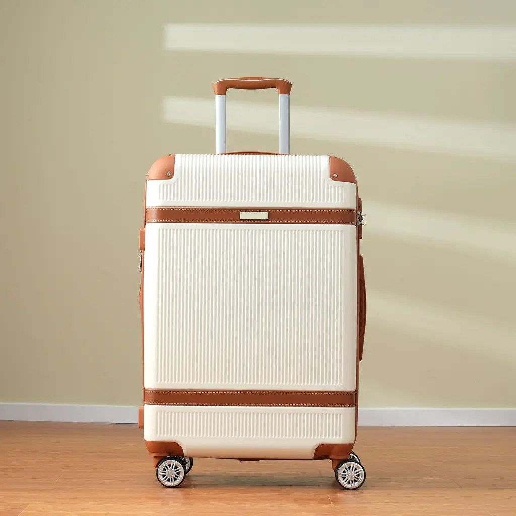 Designed for both style and durability, this ABS luggage features three-dimensional vertical stripes and reinforced corner guards that resist scratches and absorb impacts. The TSA-approved lock ensures your belongings stay secure, while the waterproof 210D lining protects items inside from moisture.Features:Quick Glance Points: