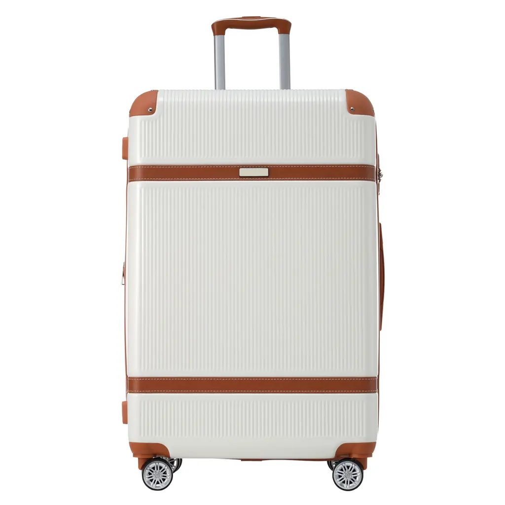 3 Piece Hardside Lightweight Luggage Sets With Double Spinner 8 Wheels And Tsa Lock - White
