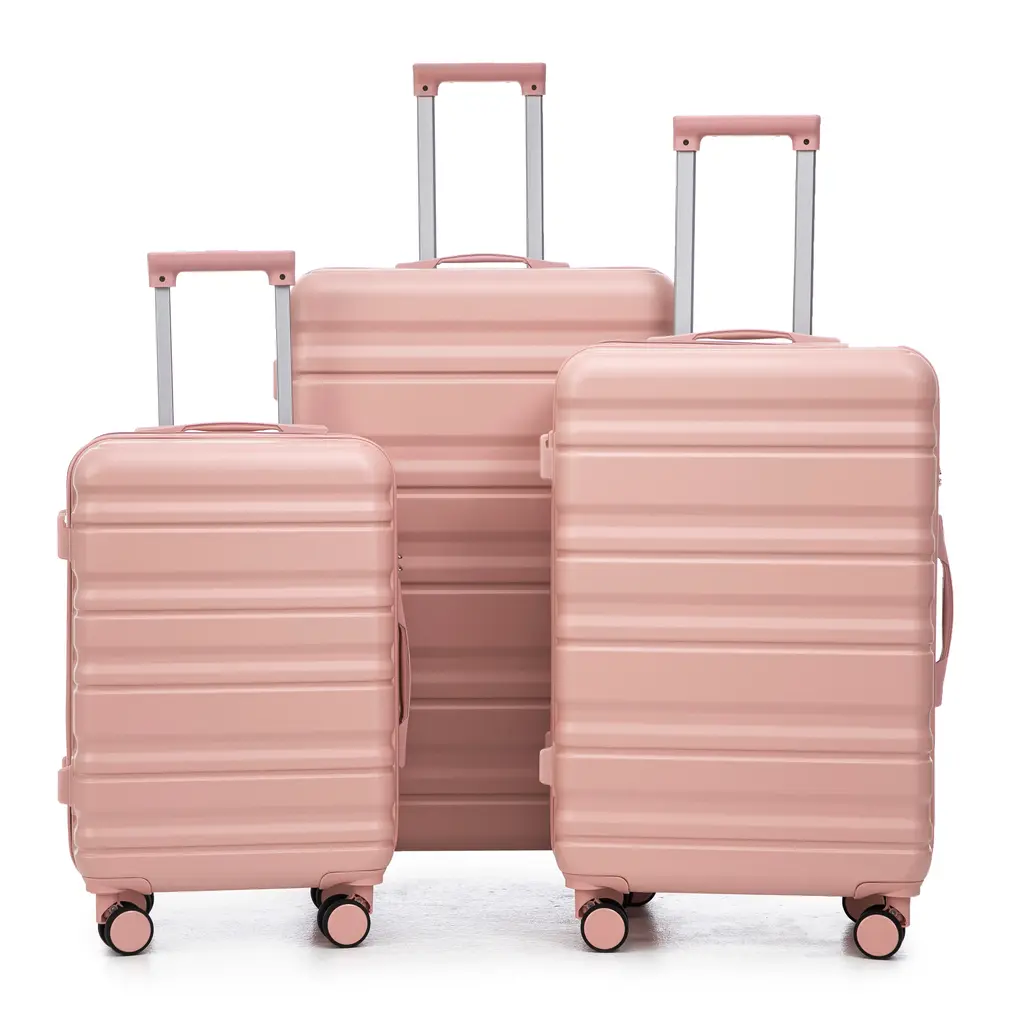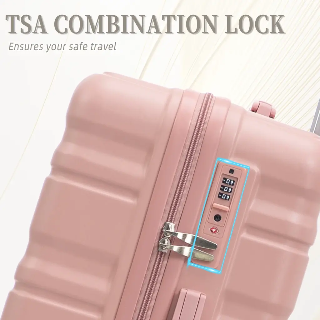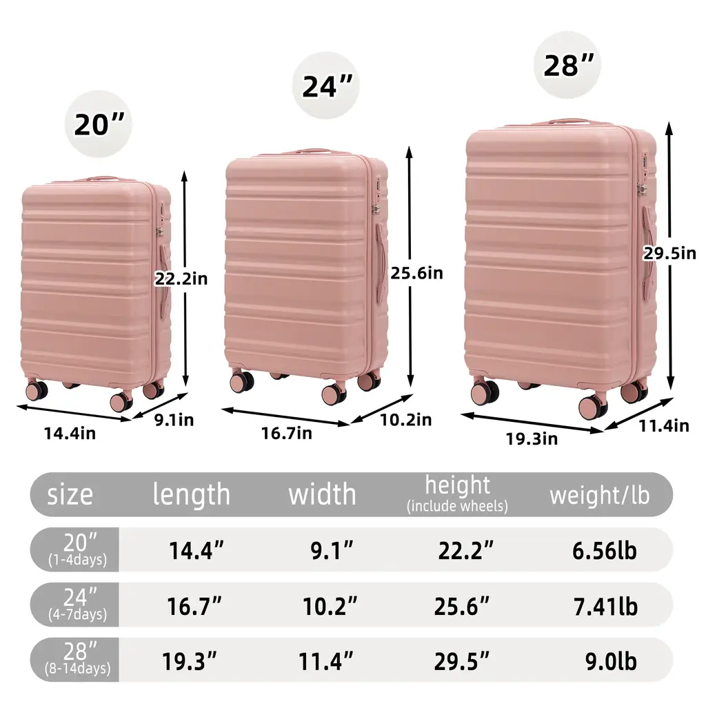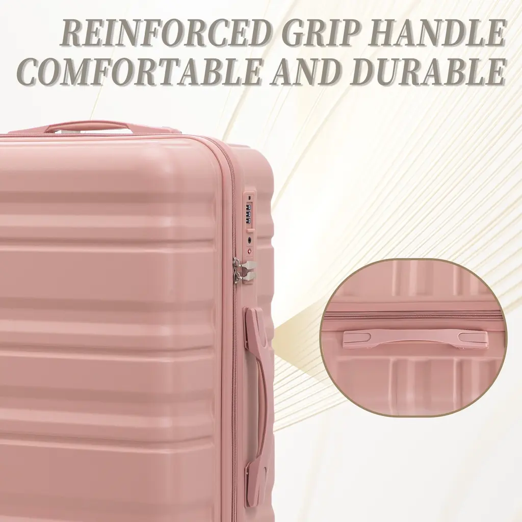 3 Piece Luggage Set Carry On Suitcase With Abs Hardshell, Spinner Wheels & Tsa Combination Lock - Light Pink